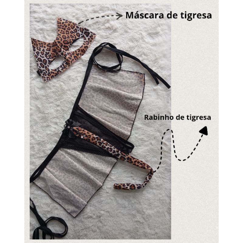 Fantasia Tigresa Plus Size Sex Shop Conjunto Sensual Sexy Feminina Erótica