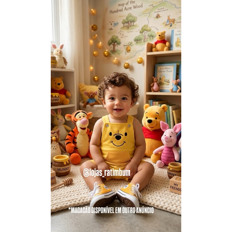 | Fantasia Ursinho Pooh Macacão Bebê Mesversário Festa Infantil, Roup... este produto | R$ 59,99 | 25% | 5.0/5 | — |