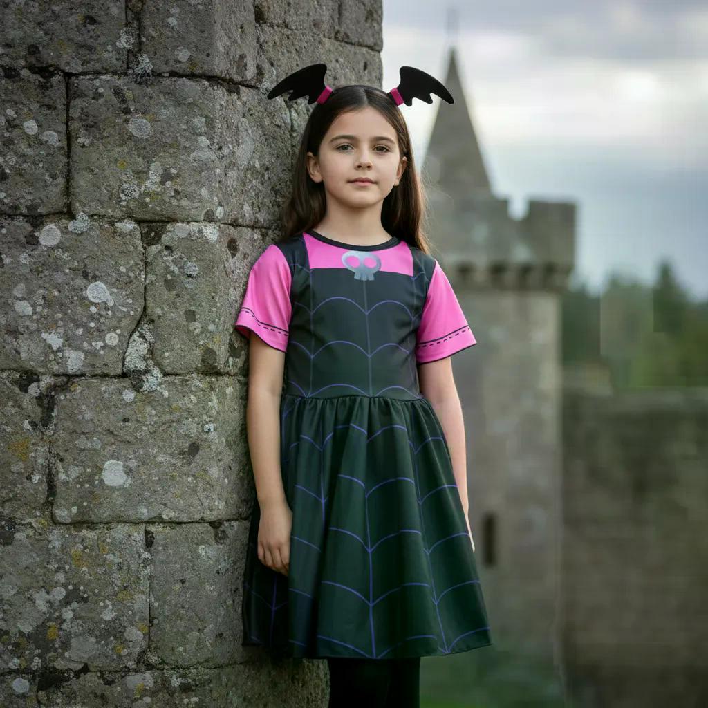 Fantasia Vampirina Infantil de Halloween Com Tiara