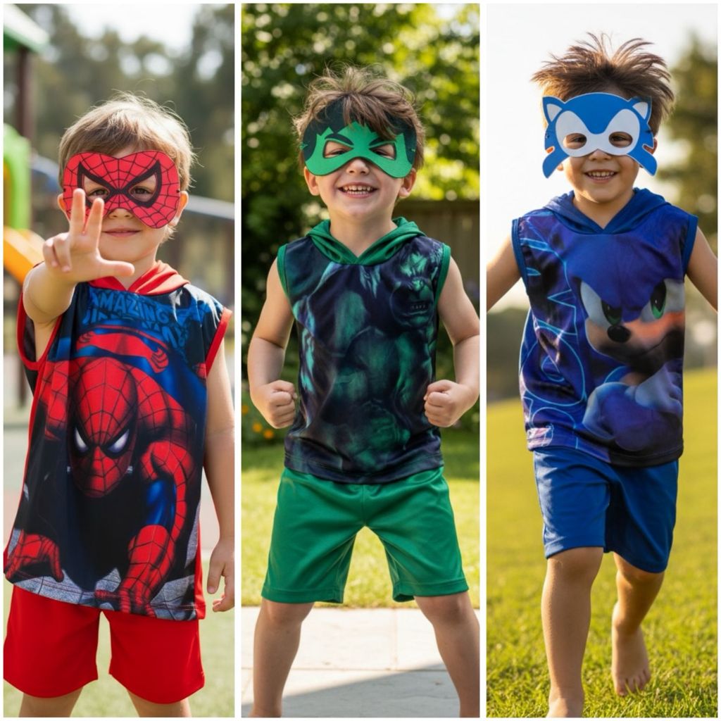 Fantasias Tematicas Infantil Menino Regata, Short E Mascara Sonic Spider Man Hulk