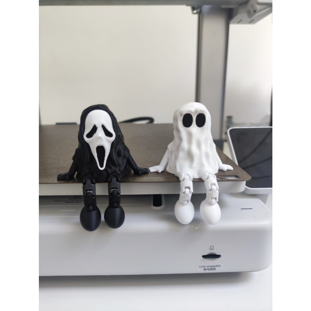 Fantasminha e Ghostface Articulados Encante-se com esses adoráveis bonecos articulados perfeito para enfeitar seu: SETUP GAMER DECORAÇÃO GEEK MESA PRATELEIRA ONDE PREFERIR DEIXA-LO DECORANDO O AMBIENTE ! Características: – Impresso em 3D com excelente acabamento – Olhos contrastantes que dão expressão à peça – Compacto e versátil para qualquer espaço Indicado para: – Fãs de decoração temática e minimalista – Quem busca um toque divertido para sua mesa ou estante – Presentes criativos e lembrancinhas únicas