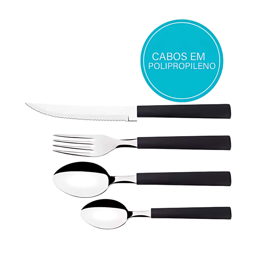 Faqueiro Aço Inoxidável com Cabos em Polipropileno Rivieira 16 Peças Preto Brinox - 6025/319