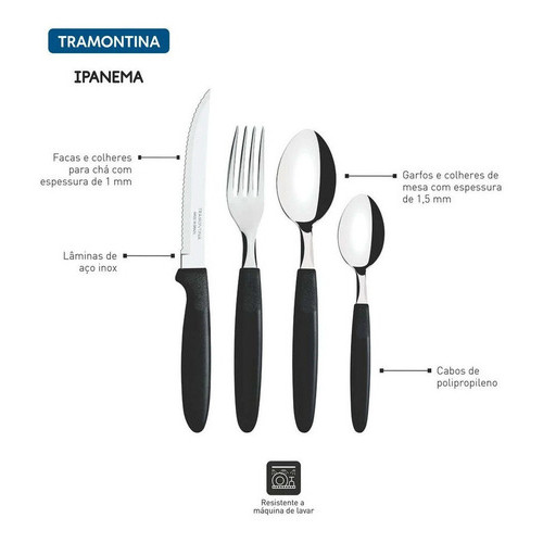 Faqueiro Ipanema Aço Inox E Cabo 24 Peças Preto Tramontina COM POTE