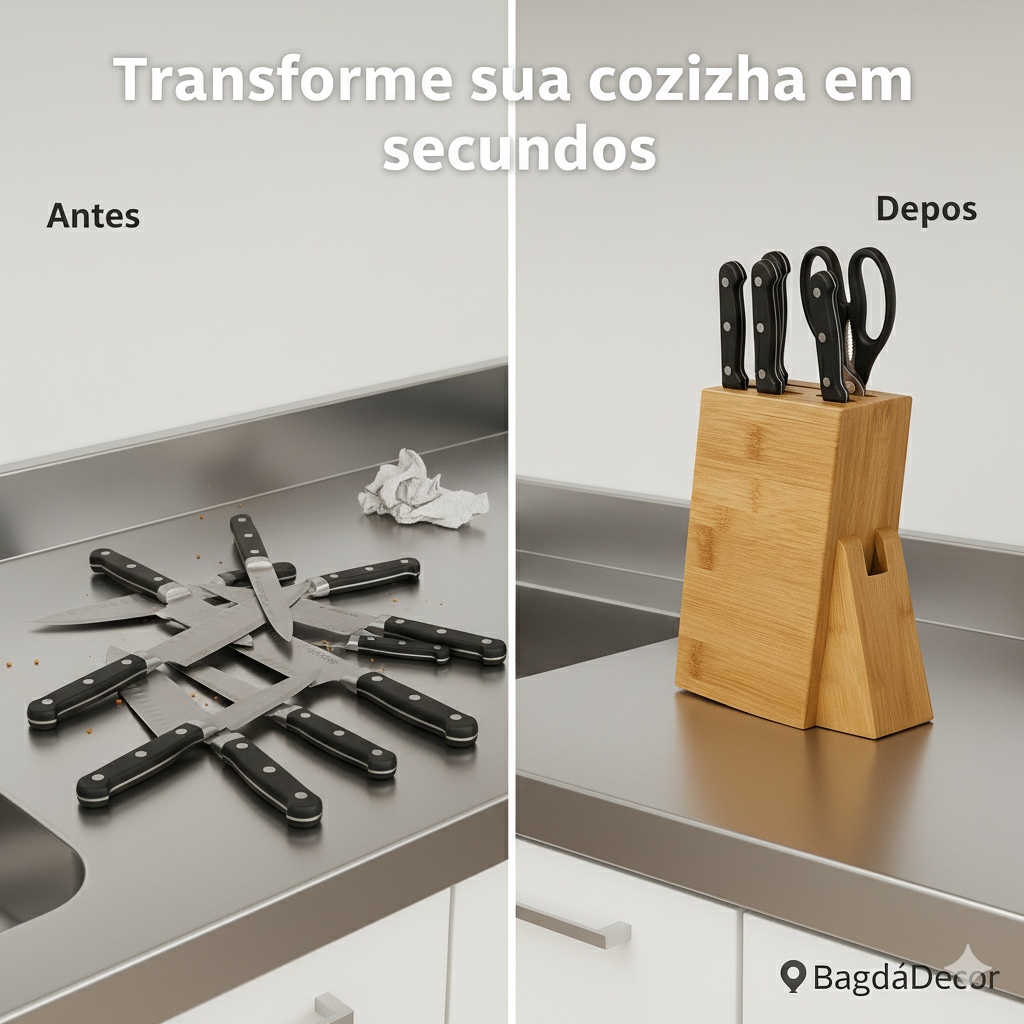 Faqueiro Porta Facas de Bambu 🍃 Organizador Durável para Cozinha Moderna com Envio Imediato 📦