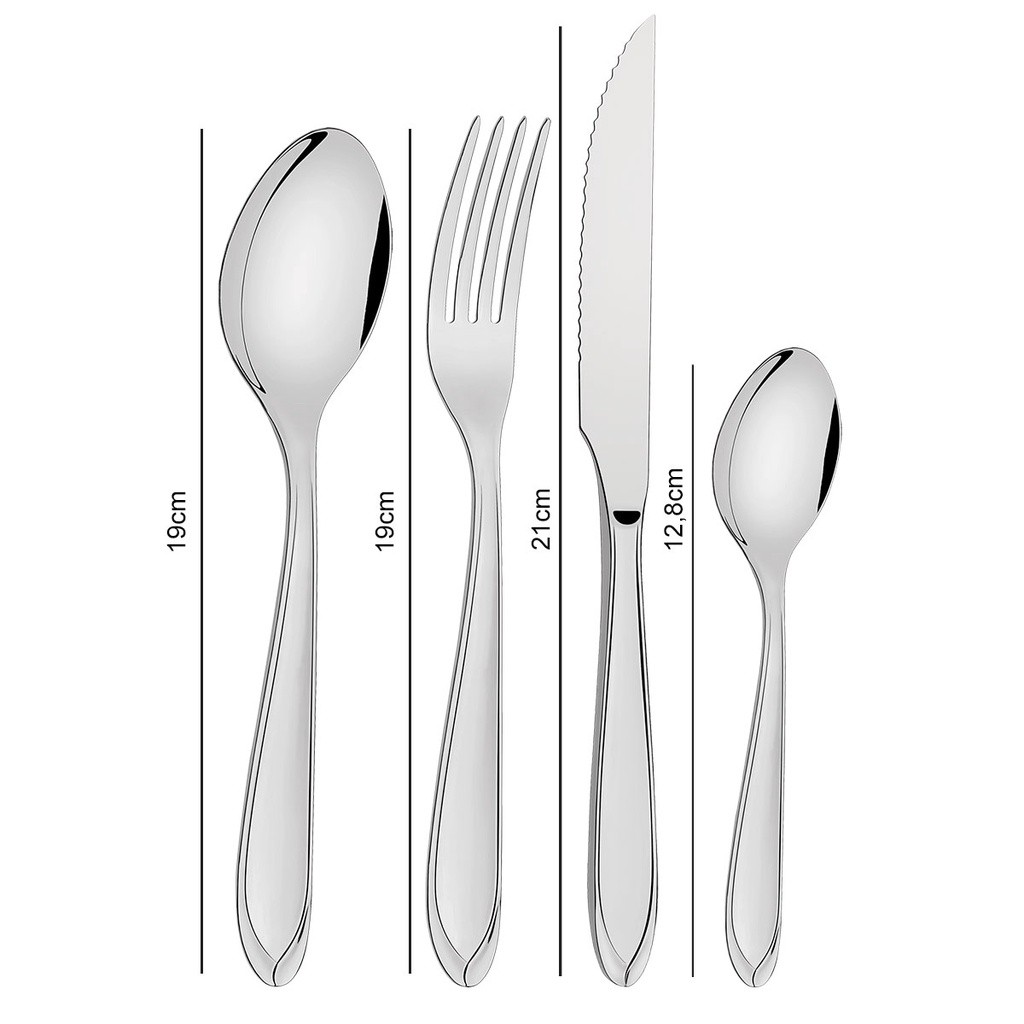 Faqueiro Tramontina Laguna em Aço Inox com Facas para Churrasco Acabamento em Brilho - 32 Peças Descrição O Faqueiro para Churrasco Tramontina em Aço Inox 32 Peças da Linha Laguna é o que faltava na sua cozinha. Perfeito para serem usados diariamente, as 32 peças combinam com qualquer ambiente e em diferentes momentos. Os talheres são totalmente produzidos em aço inox com um charmoso acabamento em brilho. Eles deixam sua mesa mais bonito devido aos detalhes no cabo. As colheres que acompanham o faqueiro possuem bojo em formato simétrico e bordas cuidadosamente arredondadas. Os garfos possuem dentes polidos na parte interna, com formato apropriado para a boca e bordas arredondadas, proporcionando maior conforto no uso. As facas são temperadas, característica que garante maior durabilidade no fio de corte e maior resistência à corrosão. Além disso, não riscam as porcelanas. O faqueiro também possui facas projetadas especialmente para churrasco, tornando esse momento ainda mais gostoso. São produtos muito úteis e versáteis para sua cozinha, que ainda facilitam na hora de lavar. Podem ser usados diariamente na máquina de lavar louças. Características: - Peças totalmente feitas de aço inox, altamente duráveis, mantêm suas características originais, preservando a beleza, a higiene e a durabilidade do material. - Colheres com bojo em formato simétrico e bordas cuidadosamente arredondadas. - Garfos com dentes polidos na parte interna, com formato apropriado para a boca e bordas arredondadas para proporcionar maior conforto no uso. - Facas totalmente temperadas, que garantem maior durabilidade no fio de corte e maior resistência à corrosão, e por suas características de temperabilidade, não riscam as porcelanas. - Acabamento em brilho, com detalhes no cabo. - Próprias para uso diário combinam com qualquer ambiente. - Podem ser lavadas diariamente na máquina de lavar louças. Orientações - Durante a lavagem, use apenas sabão ou detergente e uma esponja macia. Outros tipos de produtos como palha de aço, poderão riscar ou prejudicar o brilho dos talheres. - Enxágue bem cada peça a fim de remover totalmente os resíduos dos produtos de limpeza,pois, por serem abrasivos, podem prejudicar o inox. - Sempre que possível, use água quente, pois renova o brilho do talher. - Após a lavagem, enxugue imediatamente os talheres, caso contrário, as substâncias químicas da água (cloro) poderão causar manchas. - Evite atrito entre os talheres durante o processo de lavagem e no armazenamento, para mantê-los sem riscos. - Evite o contato das peças com superfícies quentes. Elas provocam a descoloração do produto. - Não guarde os talheres em locais úmidos. A umidade também provoca manchas. - Ao usar a lava-louça, recomendamos retirar os talheres logo que tenha terminado o ciclo e#39.e#39.enxaguare#39.e#39., a fim de que sejam secados manualmente. Ficha Técnica: - Fabricante: Tramontina - Linha: Laguna - Produto: Jogo de Facas - Cód/Modelo: 66906420 - Material: Inox - Nº de Peças: 32 Peças - Dimensão: 150x28x270 mm - Peso: 0.950 kg Componentes: 63906010 - 8x Colher de mesa 63906070 - 8x Colher para chá 63906180 - 8x Faca para churrasco 63906020 - 8x Garfo de mesa