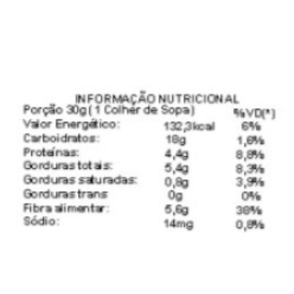 A Farinha da Felicidade é uma mistura nutritiva composta por fibra de maçã, germe de trigo tostado, gergelim com casca e farinha de aveia. Esse blend combina fibras, vitaminas e minerais, oferecendo benefícios para a saúde digestiva e energética. Ideal para ser usada em pães, bolos, smoothies ou como ingrediente em diversas receitas saudáveis. Ingredientes: Fibra de maçã, germe de trigo tostado, gergelim com casca e farinha de aveia. ALÉRGICOS: PODE CONTER TRAÇOS DE GLÚTEN, LEITE, SOJA, AMENDOIM E CACAU POR CONTAMINAÇÃO CRUZADA. INFORMAÇÕES ADICIONAIS - PODE HAVER VARIAÇÃO DE COR DEPENDENDO DO LOTE. - EMBALAGEM MERAMENTE ILUSTRATIVA.
