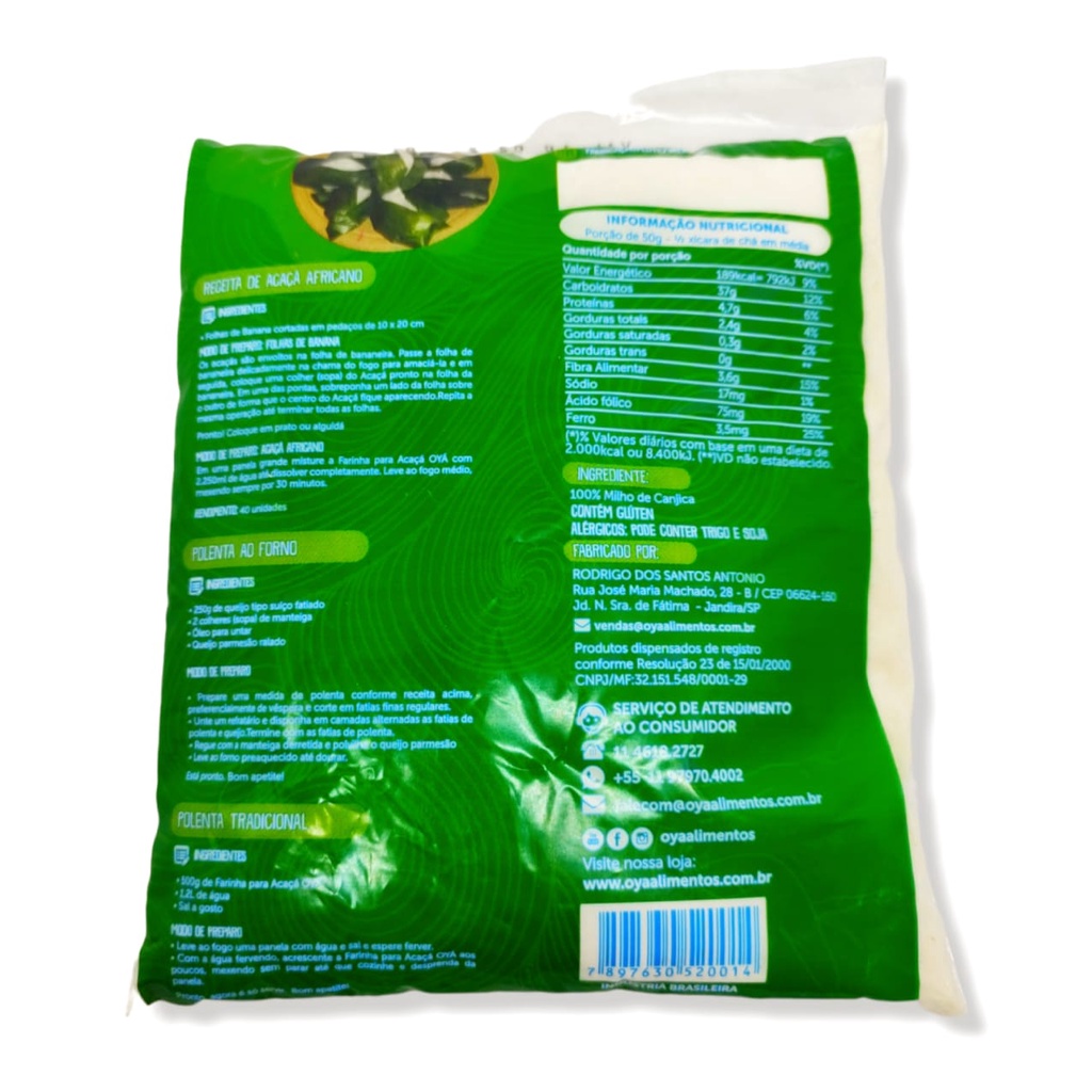 Farinha De Acaçá Para Rituais Religiosos Pacote Com 500g - É uma farinha obtida pela moagem do grão de milho branco, degerminado e sem impurezas é usada em pães, papas, broas, bolos e sobremesas. Também usada para o acaçá, um prato ritual do candomblé. O acaçá remete ao maior significado que a vida pode ter, a própria vida. E por ser o grande elemento apaziguador, que arranca a morte, a doença, a pobreza e outras mazelas do seio da vida, tornou-se a comida e predileção de todos os orixás. ----- Ficha Técnica: - Produto Novo. - Qualidade e Procedência. - 100% Original. ----- Medidas Embalagem: - Altura: 17 Cm. - Largura: 15 Cm. - Contém 500 Gramas. OBS: Valor para um pacote com 500g, podendo variar de marcar e rotulo de acordo com a disponibilidade do estoque, sendo de mesma qualidade.