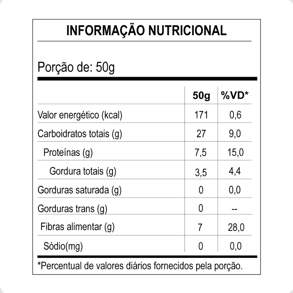 A aveia é um dos cereais mais consumidos no mundo todo e isso acontece devido aos seus diversos benefícios que são excelentes para a saúde. A farinha de aveia mantém todos os nutrientes presentes no grão inteiro e maior concentração de fibras. Uma excelente opção para pessoa que buscam manter uma alimentação saudável e equilibrada. A farinha de aveia é nutritiva, rica em vitaminas e minerais, fonte de fibras e pode ser usada como substituta das farinhas tradicionais. Muito utilizada no preparo de receitas culinárias mais nutritivas e saudáveis por tornar os alimentos muito mais ricos e benéficos à saúde. Em sua composição encontramos a vitamina B1 e minerais como fósforo, magnésio e zinco. Além de ser uma excelente fonte de proteínas. Benefícios: Alimento nutritivo e saudável. Fonte de fibras. Fonte de proteína. Fonte de vitaminas e minerais. Livre de glúten. Como usar: pode ser utilizada em vitaminas, sucos, bolos, tortas, doces, em salada de frutas ou como preferir. Ingredientes: Aveia moída. NÃO CONTÉM GLÚTEN. SEM LÁCTEO. PRODUTO VEGANO.