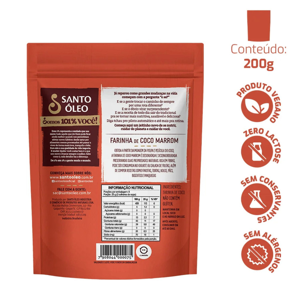 Farinha de Coco Marrom Vegano 200g Santo Óleo