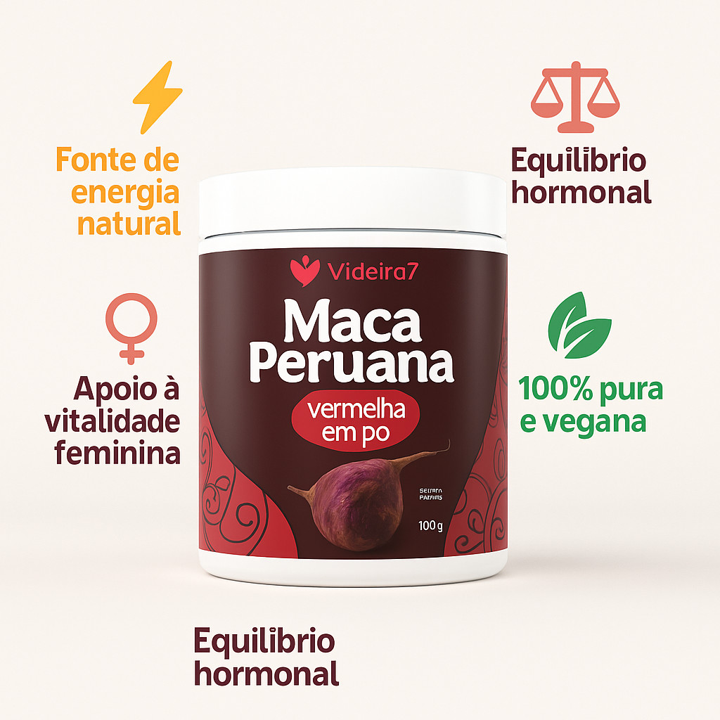 A Farinha de Maca Vermelha é um superalimento natural, fonte de nutrientes que auxiliam no equilíbrio hormonal, aumento da disposição, energia e vitalidade. Rica em compostos bioativos, vitaminas e minerais, é ideal para quem busca mais saúde, bem-estar e desempenho físico e mental no dia a dia. Benefícios: ✅ Auxilia no equilíbrio hormonal (feminino e masculino) ✅ Contribui para o aumento da disposição e energia ✅ Suporte à vitalidade física e mental ✅ Rico em nutrientes, minerais e compostos bioativos ✅ Aumenta a resistência física ✅ Produto 100% natural – sem aditivos ✅ Pode ser adicionado em sucos, vitaminas, iogurtes e receitas ℹ️ Ficha Técnica: ✅ Produto: Farinha de Maca Vermelha em Pó ✅ Peso Líquido: 100g ✅ Ingredientes: 100% Maca Vermelha em pó ✅ Não contém glúten ✅ Livre de lactose ✅ Marca: (informar a marca, se desejar) ✅ Embalagem: Pouch ou saco plástico com fechamento zip (confirmar)
