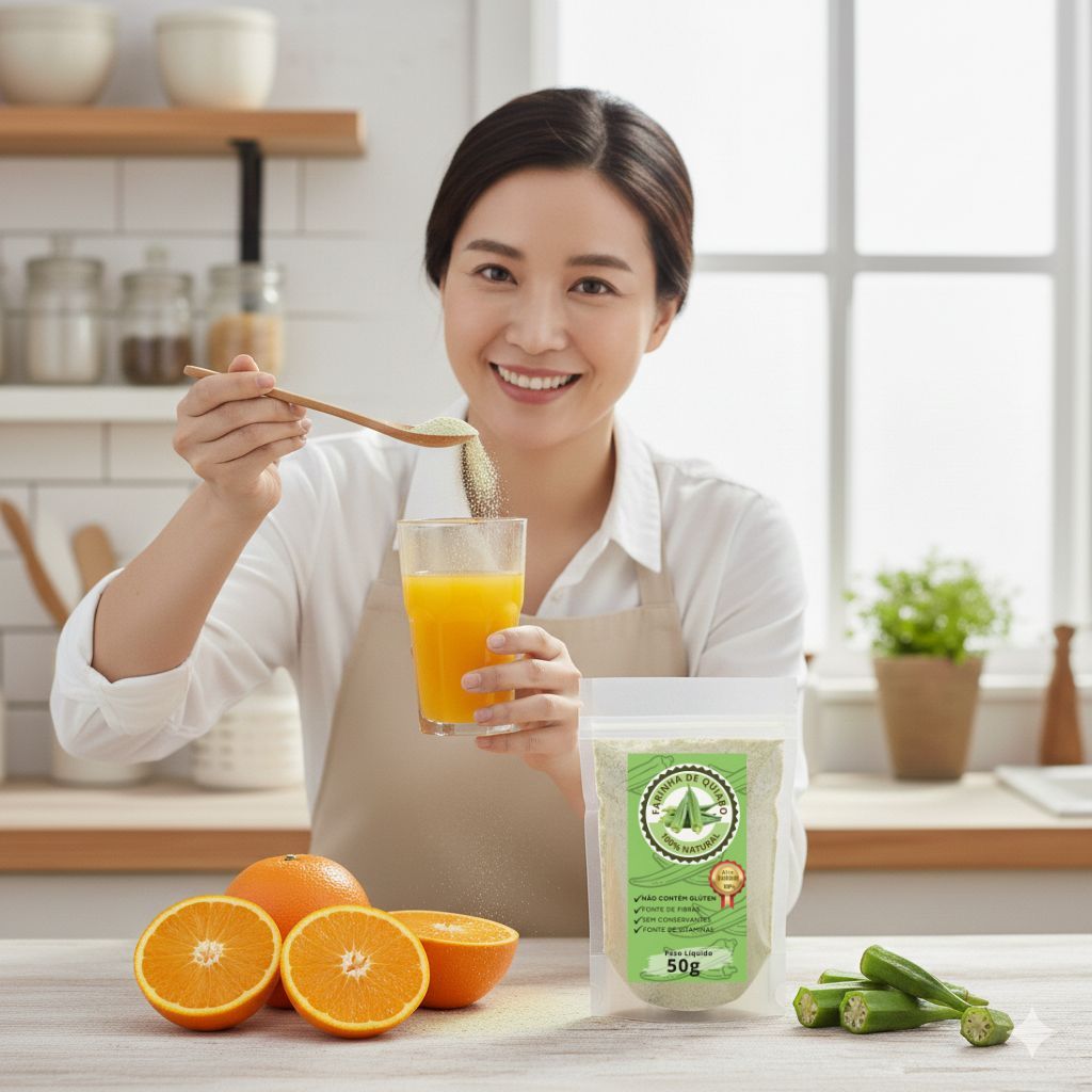 FARINHA DE QUIABO: O SEU SEGREDO DE LEVEZA E BEM-ESTAR (50g) Nossa farinha de quiabo foi desenvolvida para quem busca uma alimentação mais funcional e consciente. A Farinha de Quiabo Premium é uma fonte natural de fibras, ideal para quem deseja complementar a dieta com nutrientes que auxiliam na sensação de leveza e saciedade. É a pureza do campo direto para sua rotina. A Seleção do Chef (Ingredientes e Origem): Quiabo Premium: Cuidadosamente selecionado e desidratado em baixas temperaturas para preservação dos nutrientes naturais. Textura fina: Perfeita para misturas rápidas e receitas, sem alterar o sabor dos alimentos. Agricultura Familiar: Cultivado com dedicação por quem entende de terra, garantindo um produto autêntico e artesanal. O Diferencial da Nossa Receita: Rico em Fibras Naturais: Auxilia no bom funcionamento do organismo e proporciona maior saciedade. Versatilidade Total: Perfeito para sucos, smoothies e para dar aquela textura especial em sopas e caldos. ZERO Aditivos: 100% quiabo. Livre de maltodextrina, amidos, glúten ou conservantes químicos. Qualidade Garantida: Processo artesanal que foca na máxima pureza do ingrediente. Modo de Preparo: Dissolva 1 colher de sobremesa (10g) em 300ml de suco de frutas (fica incrível com laranja!), água de coco ou polvilhe diretamente em sua sopa ou Caldo Verde. Misture bem e sinta a leveza de uma nutrição funcional. ----------------------------------------------------------------------------------------------------------------------------------------------------------------------------- ⚠️ Informações Importantes: Nota de Autenticidade: Por ser um produto 100% natural e artesanal, a cor da farinha pode variar conforme a safra dos ingredientes. Imagens meramente ilustrativas: Os elementos visuais visam exemplificar os ingredientes reais e os benefícios de bem-estar. --------------------------------------------------------------------------------------------------------------------------------------------------------------------------- #farinhadequiabo #intestinofeliz #semestufamento #vidaleve #agriculturafamiliar #alimentacaofuncional #produtonatural #saudedigestiva #zerogluten #fibra #detoxnatural #quiabo