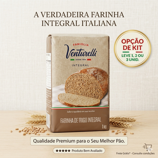 | Farinha de Trigo Integral Famiglia Venturelli 1kg - Qualidade Premi... este produto | R$ 13,99 | 27% | 4.9/5 | 123 |
