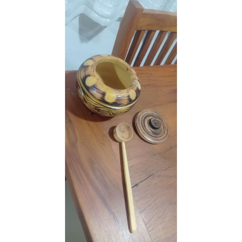 Um item indispensável na sua cozinha um ótimo produto para amarzenar farinha ou farofas além de servi para colocar temperos secos . Contém 1 colher 1 tampa e o recipiente onde se coloca a farinha. Tamanho 45 cm de circunferência 12 cm de altura 10 cm de profundidade. Tamanho da colher 22 cm 3 profundidade . Material artesanato feito em bambu. PRODUTO ARTESANAL *Por ser um produto artesanal pode sofrer alteração de tamanho.