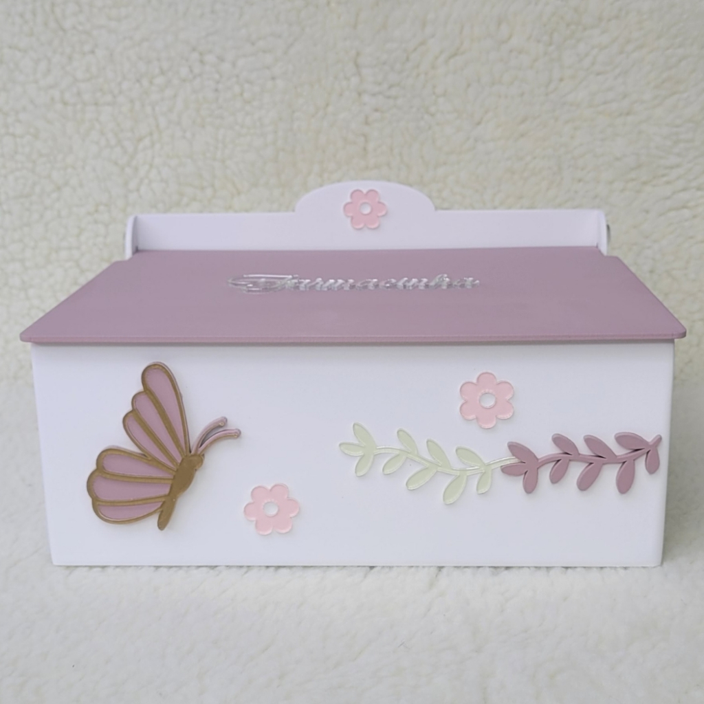 Farmacinha Jardim Encantado Flor e Borboleta em MDF para Quarto de Bebê Menina