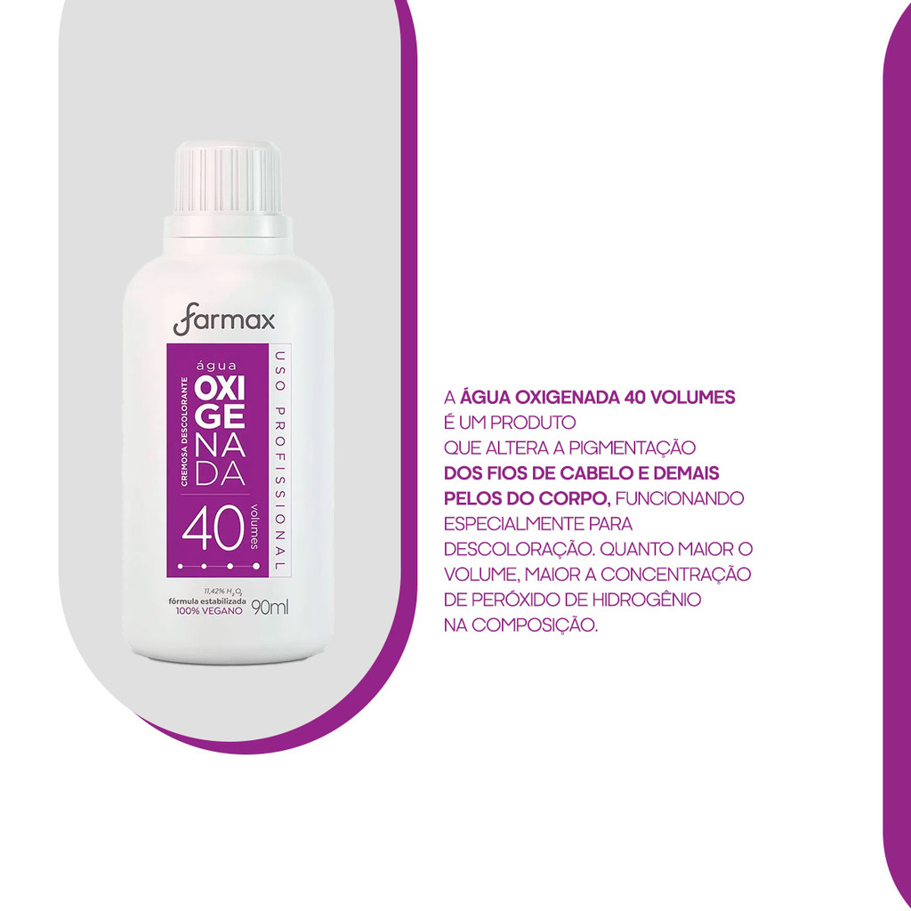 O Pó Descolorante Doura Pelos Sunless 20G promove descoloração dos pelos dos braços, pernas e barrigas. Sua fórmula deixa os fios dourados e com brilho, além de trazer colágeno em sua composição, que ajuda a manter a pele hidratada. O Descolorante Água Oxigenada Cremosa 40 Volumes Farmax 90ml apresenta fórmula estabilizada e segura, ideal para a descoloração de cabelos e o preparo de tinturas. Este produto potente pode clarear até 5 tons do cabelo virgem. Produto Original Farmax;