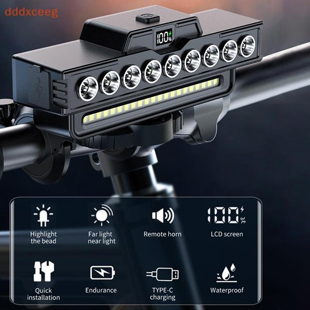 Faróis De Equipamento De Equitação Noturna Para Mountain Bike 9LED Com Buzina Luz Forte Modelo De Carregamento USB De Ti