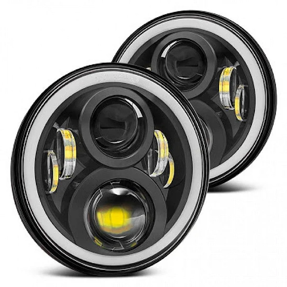 Farol Angel Drl Asx 45w 6000k 12-24v H4 Redondo 7 Polegadas