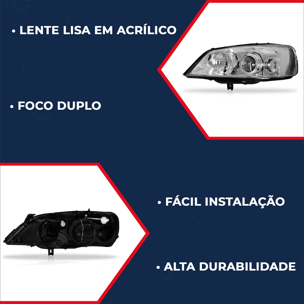 FAROL ASTRA 2003 2004 2005 2006 2007 2008 2009 2010 2011 CROMADO ATENÇÃO: - Valor Unitário; - Escolha o lado desejado. COMPATÍVEL COM: - Astra 2003; - Astra 2004; - Astra 2005; - Astra 2006; - Astra 2007; - Astra 2008; - Astra 2009; - Astra 2010; - Astra 2011. ESPECIFICAÇÕES TÉCNICAS: - Lente Lisa em Acrílico; - Carcaça em Plástico; - Foco Duplo; - Máscara Cromada; - Regulagem de Foco Elétrico; - Encaixe de Lâmpada: Alta - H1 (Não Acompanha Lâmpadas e Soquetes); - Encaixe de Lâmpada: Baixa - H7 (Não Acompanha Lâmpadas e Soquetes); - Suporta Lâmpadas de até 55W e 12V; - Encaixe Perfeito Sob Medida; - Ótima Qualidade e Acabamento. ATENÇÃO: - Garantia de 3 Meses; - Valor Unitário; - Recomendamos que a instalação seja feita por um profissional e não nos responsabilizamos pelo mau uso do produto. *As compras realizadas em nome de Pessoa Jurídica estão sujeitas à cobrança de ICMS, conforme Protocolo ICMS 41, de 4 de Abril de 2008. Caso você tenha dúvidas sobre o percentual a ser aplicado, consulte a Cláusula Segunda, §1° do referido Protocolo.