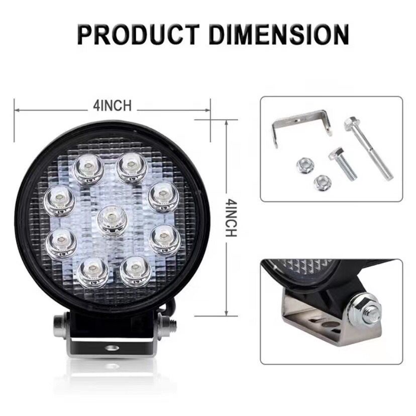 Farol Auxiliar Milha Redondo e Quadrado 9 Leds 27w Universal 12v/24v