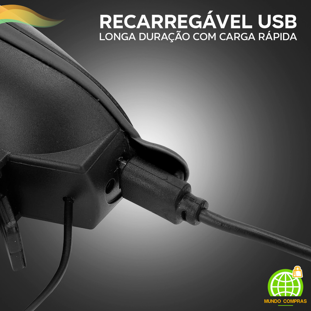 Farol de Bike Potente com Buzina - Recarregável USB e Luz LED Branca