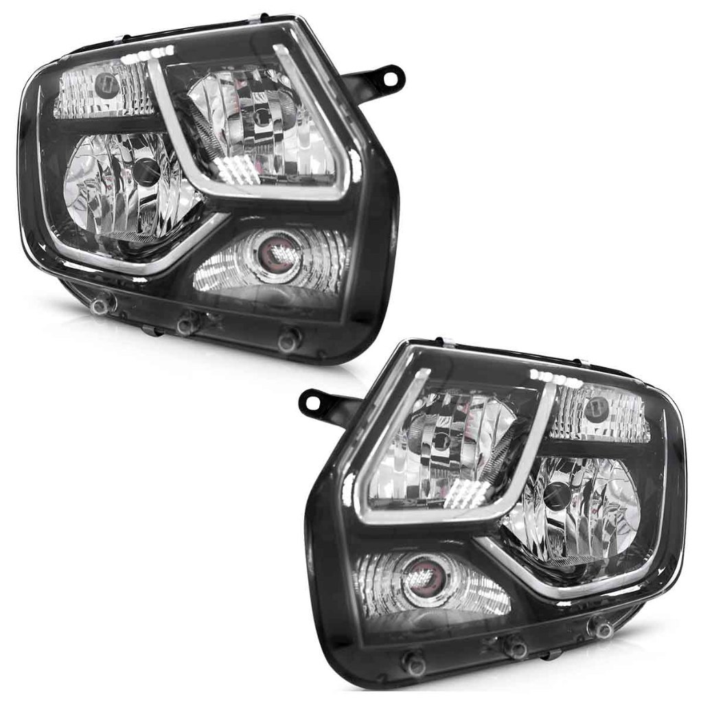 Farol Dianteiro Duster 2016 2017 2018 Máscara Negra Foco Duplo Lente Lisa Acrilico