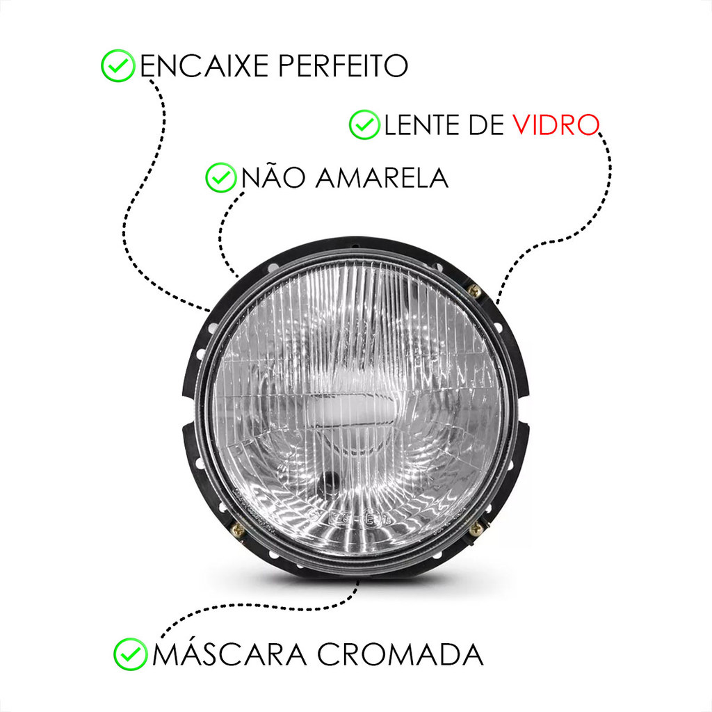 Farol Principal Volkswagen Fusca Passat Kombi + 01 Par De Pingo T10 e 01 Lixo Car Personalizado!!! Compatível com: • Fusca - 1973 A 1996 • Kombi - 1973 A 2014 • Passat - 1974 A 1978 Especificação Técnica: • Lente em Vidro • Carcaça de Plástico Rígido • Encaixe de Lâmpada H4 • Suporta Lâmpadas de Até 55W • Regulagem de Foco Manual • Acabamento Perfeito • Encaixe Sob Medida Conteúdo da Embalagem: • 01 Farol Principal LD/LE • 01 Coifa • 01 Par De Pingo T10 • 01 Lixo Car Personalizado (a cor será enviada conforme disponibildade em estoque) Importante: Garantia de 3 Meses. Produto conforme o anúncio. Recomendamos que a instalação seja feita por profissional especializado e não nos responsabilizamos pelo mau uso do produto.