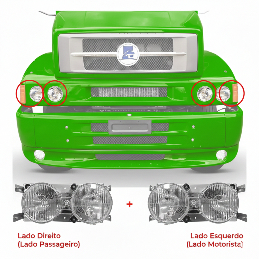 Farol Principal Dianteiro Duplo Redondo Compatível com os Caminhões Mercedes-Benz 'Bicudos' (HPN) Modelos 1620 1214 1418 1634 1938LS - Modelos de Aplicação: - 1620 - 1214 - 1418 - 1634 - 1938LS - Dimensões Aproximadas da Lente: 14cm - Dimensões Aproximadas do Farol: Altura: 15,5cm X Comprimento: 37,5cm X Largura: 14,5cm - Encaixe Lâmpada H1/H1 (Não Acompanha Lâmpada) - Lente Fabricada em Policarbonato - Carcaça Fabricada em Metal - Lente Enviada na Cor Cristal - Produto 100% novo com ótimo acabamento - Não nos responsabilizamos pela má instalação ou mau uso do produto, faça a instalação com profissionais especializados. - Atenção: As compras realizadas em nome de Pessoa Jurídica estão sujeitas a cobrança de ICMS, conforme Protocolo ICMS 41, de 4 de Abril de 2008. Caso você tenha dúvidas sobre o percentual a ser aplicado, consulte a Cláusula Segunda, §1° do referido Protocolo. - Em caso de dúvidas use o campo de Perguntas. Obs: Peças não genuínas. CÓD. REFERÊNCIA: 6948200361 6948200461