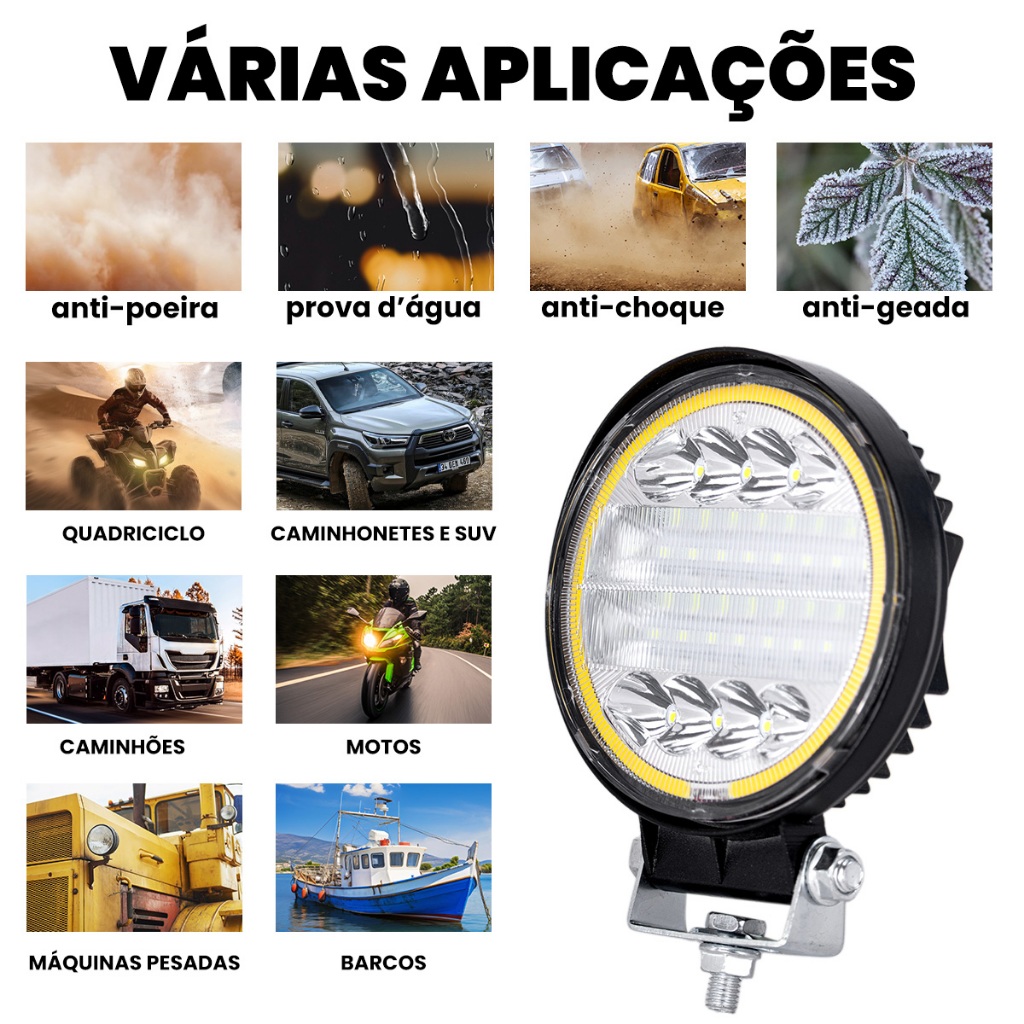 Acompanha: Farol Auxiliar Briwax FK-Y3072W (ESCOLHA QUANTIDADE) Suporte de Fixação Características: Potência: 72w Cor da Luz: Branco Frio (6500k a 7000k) Proteção: IP67 (Resistente a água e poeira) Voltagem: 9~36v Longa Vida: 50000H Material da Lente: PMMA Longo Alcance Aumente a eficiência e segurança de suas operações agrícolas ou aventuras Offroad com o Farol de Milha Auxiliar Briwax FK-Y3072W. Desenvolvido para oferecer desempenho superior, este farol combina robustez, versatilidade e tecnologia de ponta. Angel Eyes: Detalhe estético moderno e funcional para melhorar a sinalização e a aparência do veículo. Seu conector de fio simples permite uma instalação rápida e prática, otimizando seu tempo e garantindo que você possa usar o farol imediatamente. Perfeito para ser instalado em ambos os lados do veículo, este farol é indispensável para quem valoriza segurança, visibilidade e eficiência no campo. Garantia: 90 dias do Fabricante.