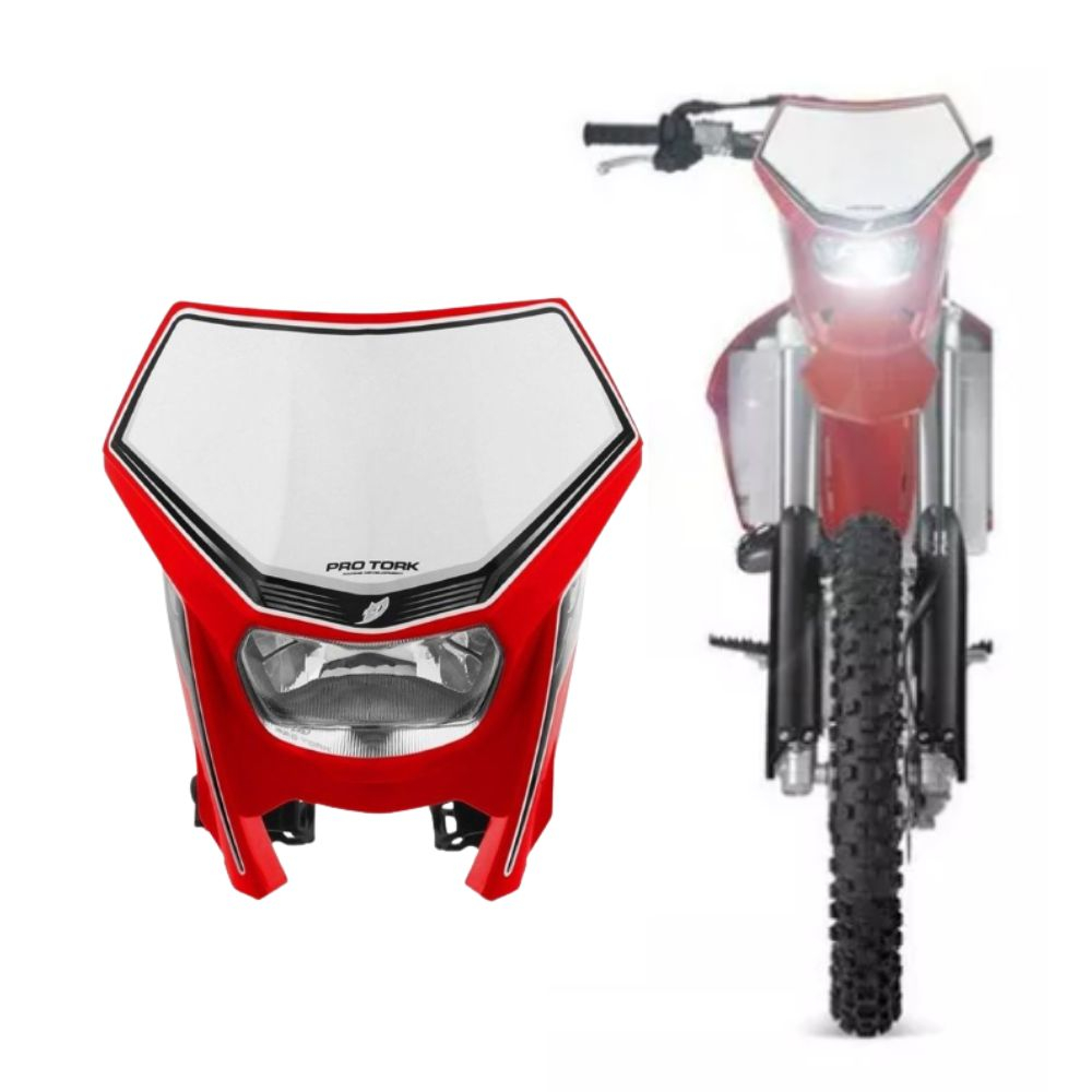 A Nova linha de Farol Moto Universal Pro Tork para Off Road virou mania nacional. O item oferece maior segurança na pilotagem, além de proporcionar um visual moderno em sua motocicleta. Fabricado com material de alta resistência, o produto é de fácil instalação e pode ser utilizado em qualquer moto, até mesmo em modelos On Road. Especificações: - Modelo Universal; - Acompanha Abraçadeira de borracha; - Estilo: Off Road e On Road; - NÃO ACOMPANHA A LÂMPADA; - Marca: Pro Tork. Instalação: - A instalação deve ser feita por um profissional especializado. A loja não se responsabiliza por instalação mal realizada; - O produto é pronto para instalação de acordo com o modelo da moto, e encaixa -se perfeitamente no lugar do original, não sendo necessário nenhum tipo de adaptação.