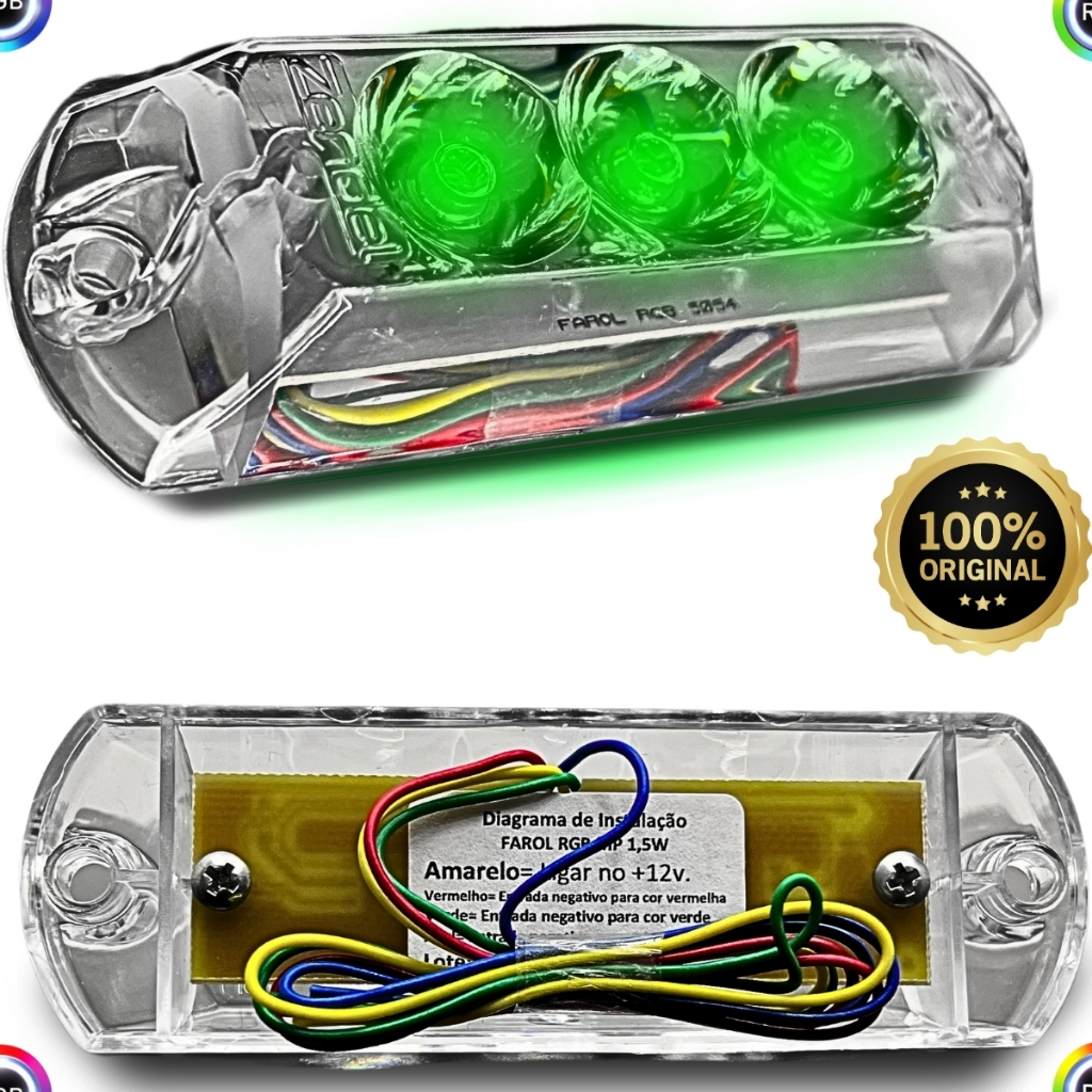 Par de farois de LED Strobo para central de Strobo da Zendel. Com esse kit RGB conectado a sua central e possivel obter ate 90 combinacoes diferentes entre cor e ritmos visuais. Pode ser utilizado tanto quanto complemento, quanto como peca de reposicao para seus farois originais, uma vez que a central aceita ate 10 farois. A base do farol avulso de Strobo da Zendel e feita com vedacao de junta de silicone, portanto ele e resistente a agua e umidade. Devido a esta vedacao voce pode explorar sua criatividade ao utilizar o farol. Para que a vedacao seja efetiva basta que o farol de led esteja instalado em superficie firme e fixa. Ele pode ser aplicado no interior e exterior de barcos, carros, motos, residencias e ate submerso como luz RGB de piscinas. Cada farol avulso RGB deste par possui 03 leds que entregam uma iluminacao RGB e moderna para seu kit Strobo. Cada led tem uma luz potente e possui longa vida util. Devido ao seu modelo RGB este farol gera ate 7 cores diferentes todas formadas a partir das cores: azul, vermelha e verde. A lente do farol avulso e feita em acrilico transparente com alta resistencia. Aproveite esta oportunidade e combine esse par de farois com seu Strobo e deixe o seu show de luzes ainda mais poderoso! Informacoes Tecnicas: - Quantidade de Leds por Farol: 3; - Tensao de Operacao: 9 a 14,4V DC; - Potencia do Led: 1W; - Material da Lente: Acrilico Transparente; - Material da Vedacao: Junta em Silicone; - Resistente a Agua; - Ao Instalar o Farol Submerso e Obrigatorio Vedar com Silicone a Entrada dos Cabos; - Para Que a Vedacao Seja Efetiva o Farol Deve Ser Instalado em Superficie Firme e Fixa; - Consumo Maximo: 14,4V: 490 mA; - Dimensoes (Altura x Comprimento x Largura): 2 cm x 9,5 cm x 3 cm; - Cor da Iluminacao: RGB; - Possibilidades de Cor: 7; - Opcoes de Iluminacao: Vermelho, Verde, Azul, Rosa, Branco, Amarelo, Ciano. Conteudo da Embalagem: - 02 Farois de LED Strobo RGB Importante: - Valor unitario - Imagens meramente ilustrativas - Garantia de fabrica com duracao de 3 meses - Recomendamos que a instalacao seja feita por um profissional, e nao nos responsabilizamos pelo mau uso do produto.