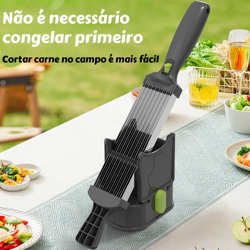 Fatiador de Alimentos Multifuncional Manual para Carnes, Queijos e Legumes - Lâmina Ajustável em Aço Inox