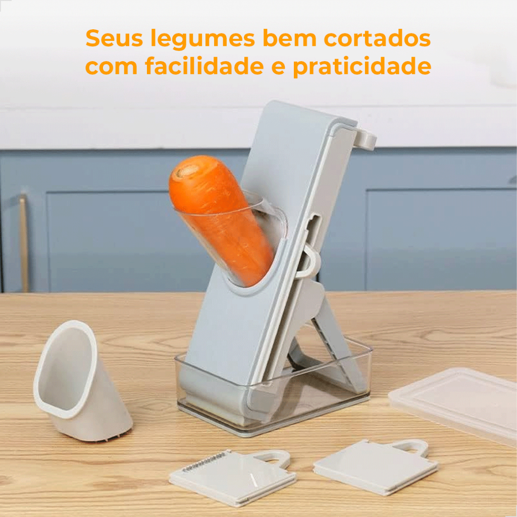 Fatiador ZOLELE Para Frutas Legumes e Vegetais Corte Preciso Com Recipiente 4 Em 1 Cor Cinza 600ML