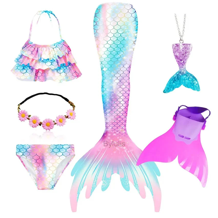Fato De Banho De Cauda De Sereia Para Meninas Kids Swimming Mermaid Tails Fantasia De Praia Crianças Cosplay