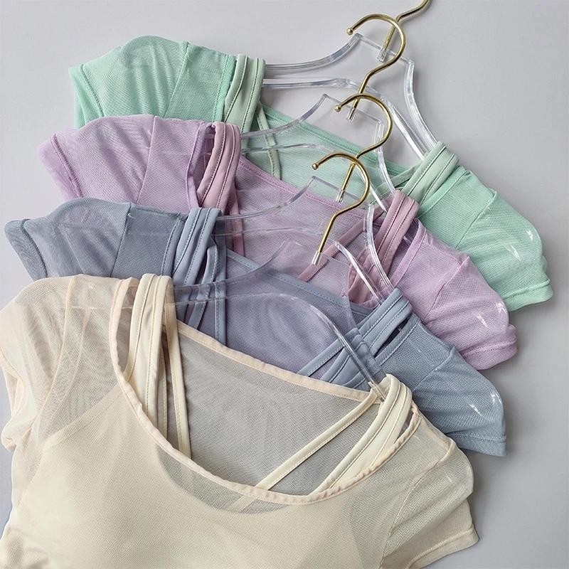 Fato De Treinamento Feminino Pilates Fitness Peito Almofada De Yoga Top Secagem Rápida Esportes De Alta Sensação Esportiva De Manga Curta Respirável