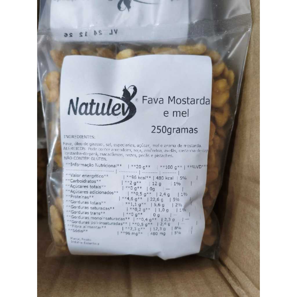 Fava Torrada Mostarda & Mel Descubra o equilíbrio perfeito entre crocância, sabor e leveza com nossa Fava Torrada Mostarda & Mel. Um snack surpreendente, que combina o toque agridoce do mel com a picância suave da mostarda, criando uma explosão de sabor a cada mordida. Torradas no ponto ideal, as favas ficam levinhas, super crocantes e cheias de personalidade. É a escolha perfeita para quem busca um lanche diferente, saboroso e com aquele tempero especial que não se encontra em qualquer lugar. Perfeitas para levar na bolsa, acompanhar o trabalho, matar a vontade de beliscar ou impressionar nas reuniões com amigos. Práticas, deliciosas e cheias de charme — um snack que conquista desde o primeiro pacote. Se você procura algo saboroso, marcante e moderno, a Fava Torrada Mostarda & Mel é o match ideal para o seu dia.