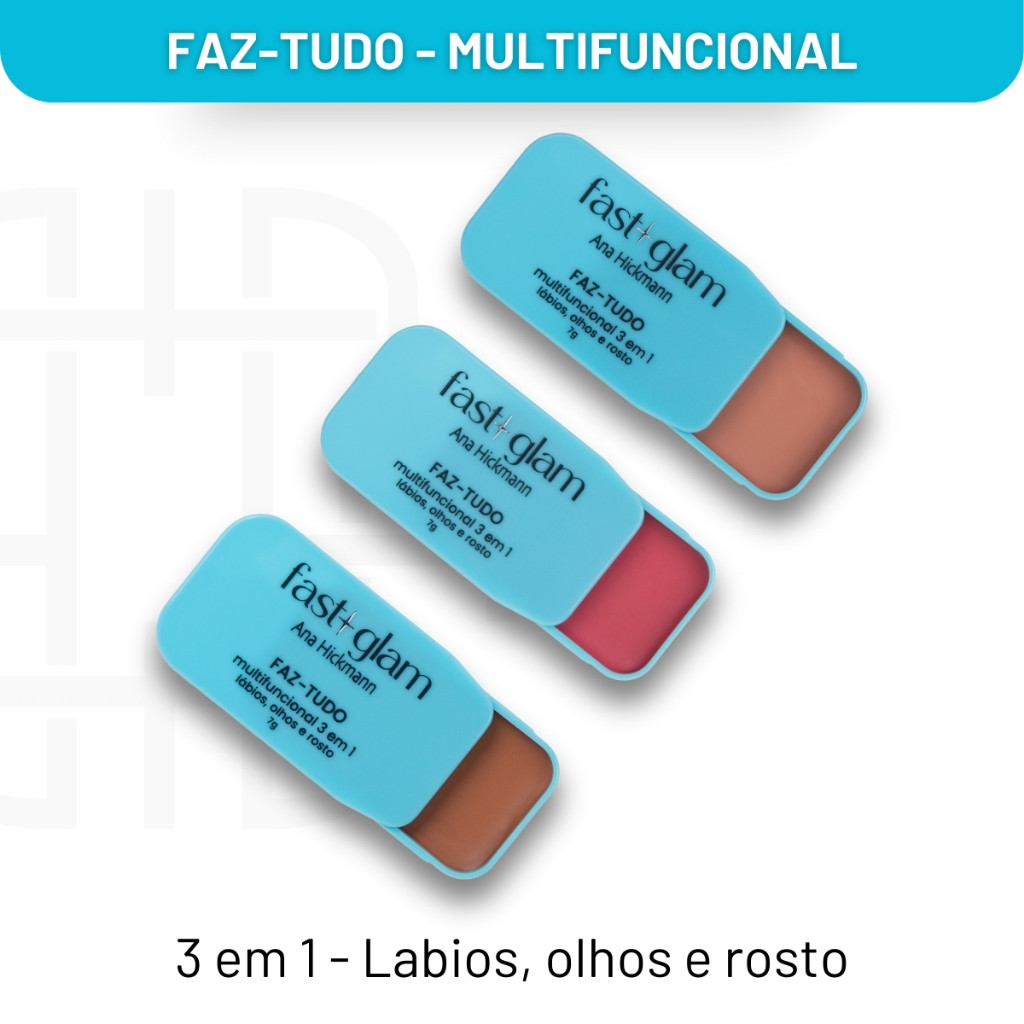 Faz Tudo Multifuncional 3 em 1 Blush Contorno Sombra Batom Fast Glam Ana Hickmann