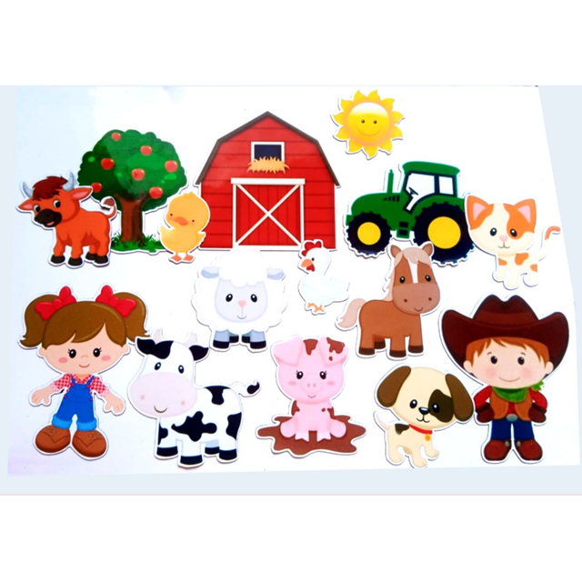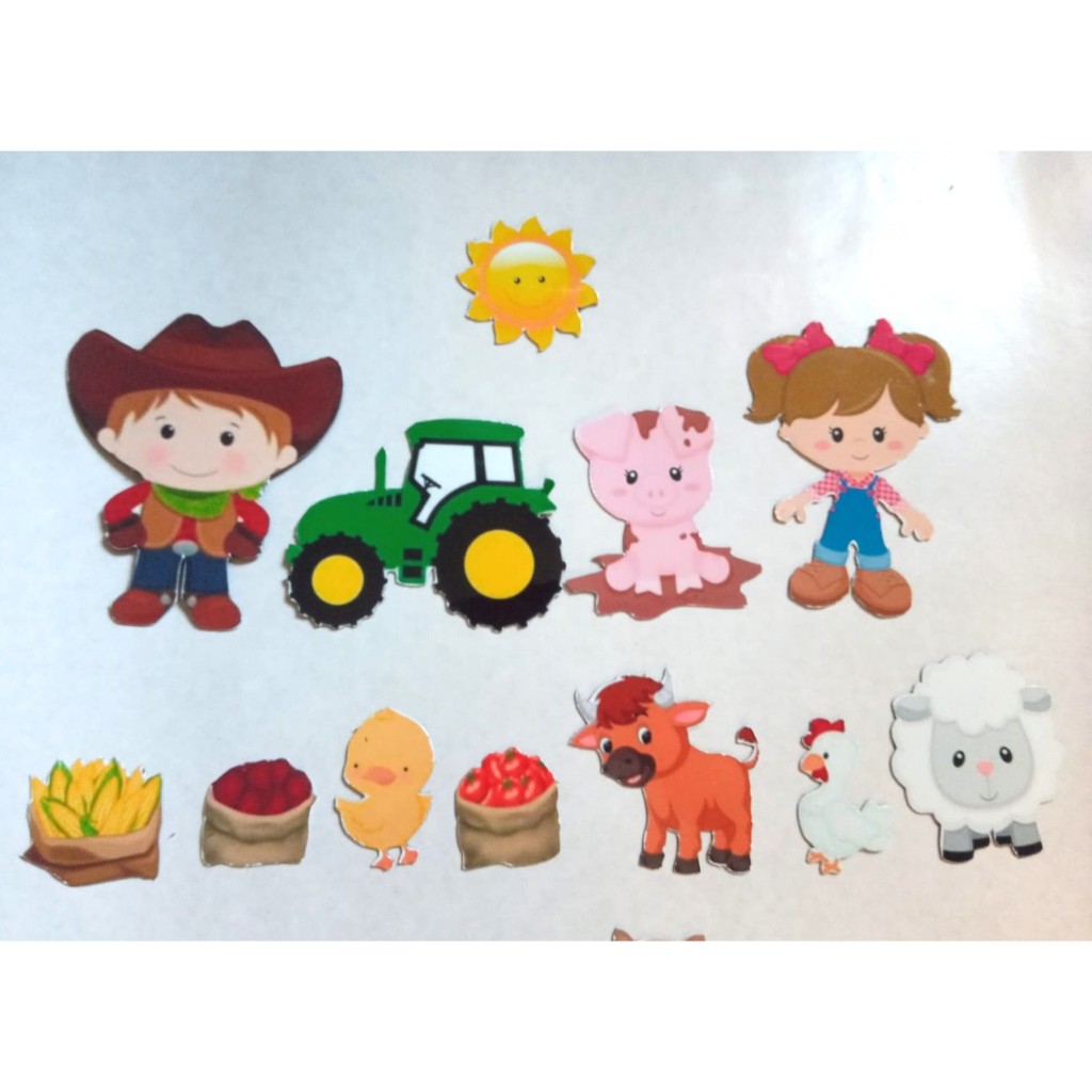 Incentive a criação e a imaginação! Brinque com sua criança ensinando sobre animais da fazenda. Neste brinquedo vc encontrará vaquinha, cavalo, ovelha, boi, um menino e uma menina dentre outros. As cores brilhantes atraem a atenção da criança. Desenvolve a coordenação e reconhecimento de padrões. Tire as crianças da frente da telinha e incentive a imaginação com este brinquedo envolvente. Especificações Modelo: Magnet Dolls Material: Viníl e manta magnética 0.3 mm Idade: a partir de 4 anos Medidas: *Tamanho normal é 8 cm em média. *Tamanho grande é 12 cm em média São 16 peças.