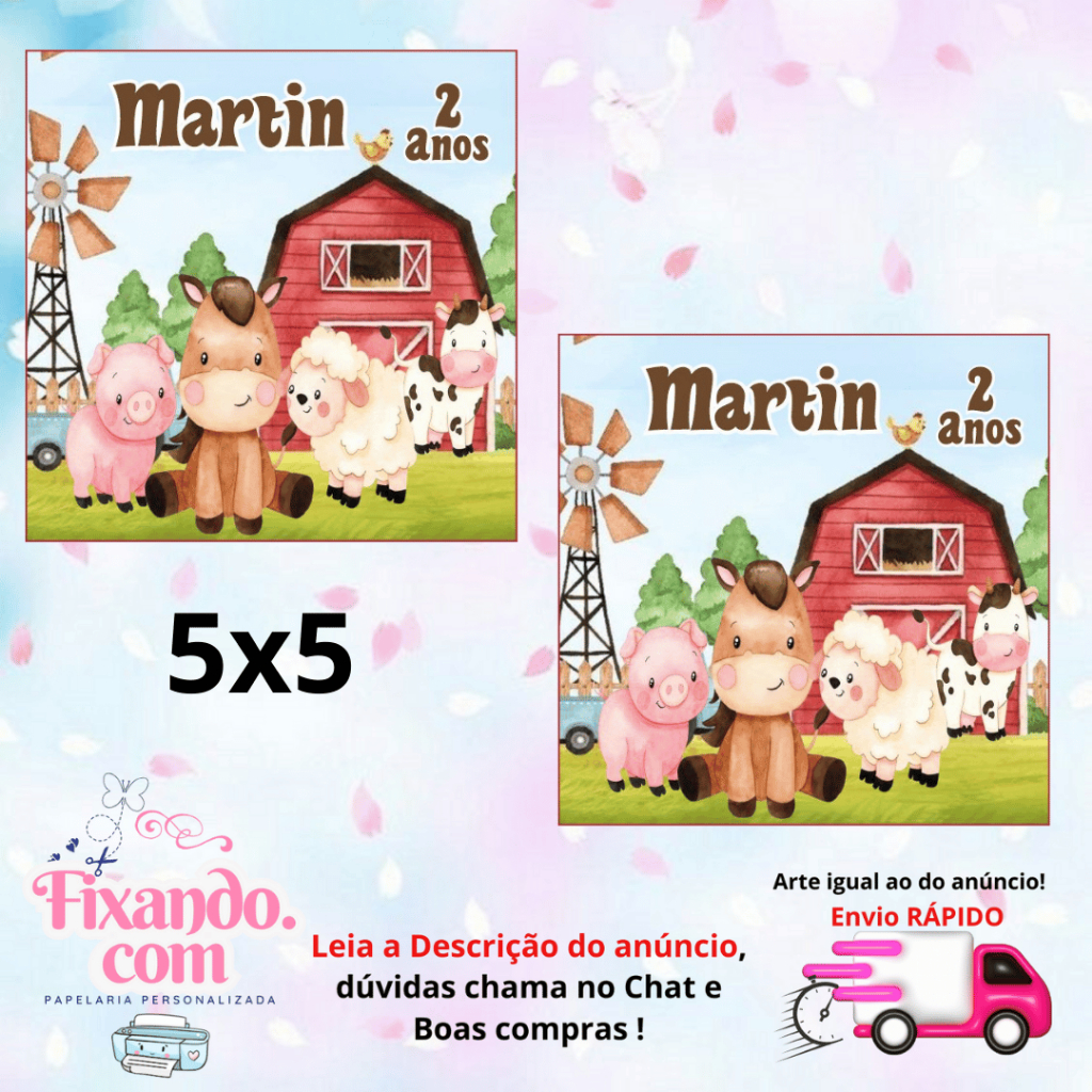 Tema: FAZENDINHA VERMELHA ✨PAPEL ADESIVO 115G ✨REDONDO TAMANHO 5X5 ✨ QUADRADO TAMANHO 5X5 ✨ TUBETE TAMANHO 7X3,5 OBSERVAÇÃO: Os adesivos NÃO são em 3D ✨ Personalizáveis com o nome e idade ✨ Papel adesivo com brilho e alta qualidade ✨Não alteramos, nem trocamos as medidas dos adesivos ✨Não vai Recortado IMPORTANTE: Após efetuar sua compra, enviar nome e idade; *** SE ATENTEM EM MANDAR OS NOMES E IDADE NO ATO DA COMPRA*** ***NÃO TRABALHAMOS COM PEDIDOS DE URGÊNCIA !!!***