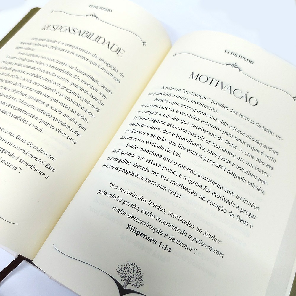 Fé para Viver - Devocional Diário (Anual) A fé é algo essencial na ida de todo cristão, pois por meio dela é possível crer em Deus e esperar pelo Seu agir. Pela fé é possível testemunhar grandes milagres e experimentar a gratidão pelas pequenas bençãos diárias. Assim como afirma Romanos 10:17, sabemos que a Fé é alimentada e fortalecida ao ouvir, conhecer e meditar na Palavra de Deus. Neste devocional anual, você será levado a compreender as diferentes palavras existenciais na Bíblia, bem como a sua etimologia, ou seja, o seu real significado, de modo que, a cada dia, você recebe a verdadeira fé para viver! Se deseja receber porções de fé e uma esperança renovada para enfrentar qualquer situação cotidiana, dedique um tempo para a prática da leitura devocional, da oração, da meditação nas passagens bíblicas. Receba tudo que Deus já reservou para você e persevere na jornada de fé para viver!