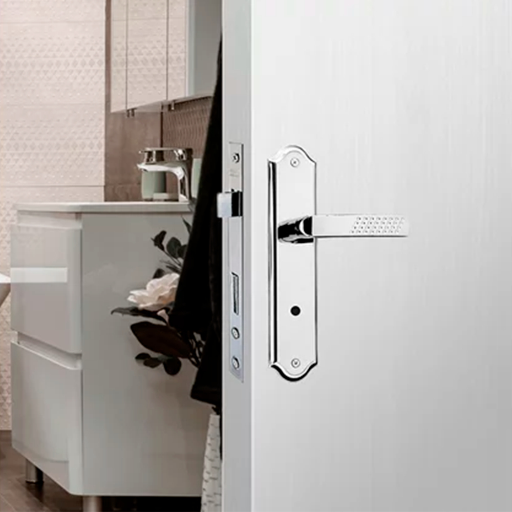 A Fechadura 1100 Italy Class - Banheiro - Cromado é um dispositivo de segurança projetado especificamente para portas de banheiro, oferecendo privacidade e funcionalidade para este ambiente específico. Seu acabamento cromado proporciona um visual moderno e elegante, adicionando um toque estético ao ambiente do banheiro. A Fechadura 1100 Italy Class para banheiro não é compatível com chaves externas, uma vez que sua função principal é garantir privacidade aos ocupantes do banheiro. Os produtos Silvana possuem extrema qualidade com o melhor custo-benefício do mercado pensando em te ajudar a fazer a melhor escolha, desenvolvida para consumidores exigentes que buscam qualidade e design, aliados a um preço acessível. As Fechadura de embutir com broca 40 mm, espelho ou rosetas em aço inox conforme a linha, maçanetas, trinco e lingueta em zamac, testa e contra testa em aço carbono. DIFERENCIAIS: - Melhor custo-benefício do mercado - Qualidade e design alinhados - Reversão simplificada de trinco - Distância de broca de 40 mm - Acompanha chave na embalagem - Conjunto completo de fechadura - Modelo de envio rápido EMBALAGEM: Conjunto completo de fechadura + Guarnições + Parafusos APLICAÇÃO: Portas de Madeira de 25 mm a 30 mm de espessura; Portas externas; Uso em portas com distância de broca de 40 mm. MEDIDAS DA EMBALAGEM (cm): L (10,5) x A (5,0) x C (19,5) PESO DA EMBALAGEM (kg): 0,699 COMPOSIÇÃO: Aço carbono - testa, contra testa e parafusos; Zamac - maçaneta, lingueta, trinco, canhão; Aço Inox - espelhos ou rosetas conforme a linha; Latão - chave. DESEMPENHO: Modelo de acordo com a norma NBR 14913. Grau de Segurança Médio, Ideal para Tráfego Leve com Resistência a Corrosão de nível 1. GARANTIA: Maior segurança com a garantia Oficial Silvana de 12 meses para defeitos de fabricação.