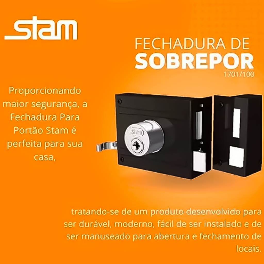 COMERCIAL VIPASA DISTRIBUIDORA. Fechadura De Sobrepor Tetra 1701/80 Preto Fosco Para Portão Portas Com 4 Chaves - STAM Fechadura De Sobrepor Tetra 1701/80 Preto Fosco P/ Portão Composição: • Aço ABNT 1010/1020 • Aço Inoxidável • Latão • Zamac 5 A fechadura de sobrepor Tetra 1701/80 na cor preto fosco, projetada para portões, é uma peça fundamental para garantir segurança e controle de acesso em residências, estabelecimentos comerciais e industriais. Descrição: Tipo de Fechadura: Esta fechadura pertence ao tipo Tetra, que é um mecanismo de segurança que utiliza quatro pinos para travar o mecanismo interno da fechadura, proporcionando um alto nível de segurança contra arrombamentos e invasões. Instalação de Sobrepor: Projetada para ser instalada sobre a superfície do portão, esta fechadura é adequada para portões de metal, madeira ou PVC, proporcionando uma instalação fácil e rápida sem a necessidade de cortes ou alterações na estrutura do portão. Material e Acabamento: Fabricada em material resistente, como aço ou metal zincado, esta fechadura é durável e capaz de suportar condições climáticas adversas. O acabamento preto fosco oferece uma aparência elegante e moderna, combinando com uma variedade de estilos arquitetônicos. Mecanismo de Travamento: O mecanismo Tetra oferece um alto nível de segurança, garantindo que o portão permaneça firmemente travado e protegido contra tentativas de arrombamento. Chave Tetra: A fechadura é acompanhada por uma chave Tetra especial, que possui quatro pinos correspondentes aos pinos internos da fechadura. Essa chave é projetada para fornecer um controle de acesso seguro e confiável. Aplicações: Esta fechadura é adequada para uma variedade de portões, incluindo portões de entrada, portões de garagem, portões de jardim e outros tipos de portões residenciais, comerciais e industriais. Benefícios: Segurança Avançada: O mecanismo Tetra oferece um alto nível de segurança, proporcionando tranquilidade e proteção contra arrombamentos e invasões. Facilidade de Instalação: Projetada para instalação de sobrepor, esta fechadura oferece uma solução fácil e rápida para adicionar segurança ao seu portão sem a necessidade de alterações na estrutura existente. Durabilidade: Fabricada em material resistente e com acabamento preto fosco, esta fechadura é durável e capaz de suportar condições climáticas adversas por muitos anos. Estética: O acabamento preto fosco confere uma aparência moderna e elegante ao portão, complementando o design geral da propriedade. A fechadura de sobrepor Tetra 1701/80 na cor preto fosco é uma escolha confiável e segura para adicionar proteção e controle de acesso ao seu portão, proporcionando segurança, durabilidade e uma estética atraente para sua propriedade. COMERCIAL VIPASA DISTRIBUIDORA.