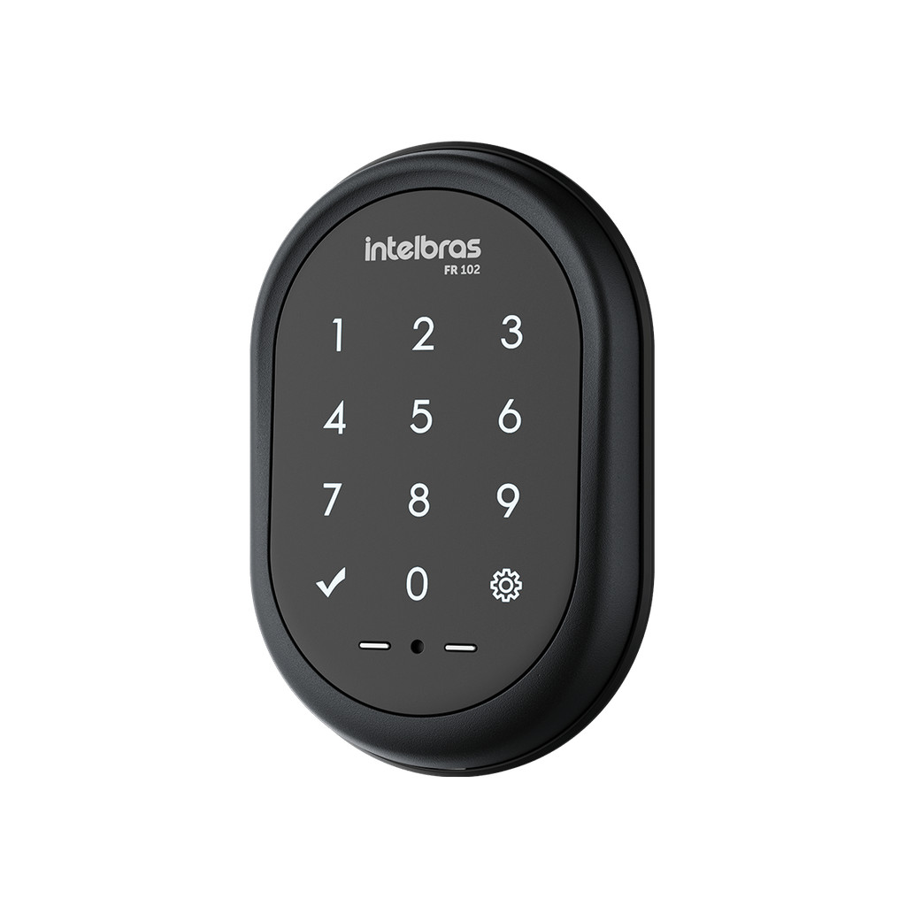 A Fechadura Digital FR 102 da Intelbras combina segurança, tecnologia e praticidade para facilitar o seu dia a dia. Com teclado touch screen, permite cadastrar até 100 senhas numéricas de 4 a 12 dígitos, garantindo controle de acesso seguro e personalizado. Com instalação de sobrepor e projetada para portas pivotantes de 25 mm a 50 mm de espessura, é compatível com portas de madeira. Conta com travamento automático e função senha aleatória, que impede a visualização do código por terceiros. Ideal para instalação em apartamentos e salas comerciais, a fechadura FR 102 é de uso interno e deve ser mantida em ambientes protegidos de sol e chuva. Alimentada por 4 pilhas AA (já inclusas), possui autonomia de até 1 ano (considerando uma média de 10 acessos diários) e alerta de bateria fraca. Para emergências, conta com entrada para bateria 9V. Principais funcionalidades: • Abertura por senha – Cadastro de até 100 senhas numéricas. Configure senhas individuais para familiares e visitantes, garantindo mais segurança no acesso. • Teclado touch screen – Tecnologia moderna e de fácil uso. Digite sua senha sem esforço e sem desgaste das teclas físicas. • Travamento automático – A porta se fecha sozinha após o uso. Nunca mais se preocupe em trancar a porta ao sair de casa. • Alerta de bateria fraca – Aviso sonoro e visual com antecedência. A fechadura avisa quando a bateria está acabando para evitar contratempos. • Função não perturbe – Bloqueia a abertura pelo lado externo. Evite acessos indesejados durante a noite ou em momentos de privacidade. • Entrada para bateria 9V em emergências – Alternativa para abertura caso as pilhas acabem. Se a bateria descarregar, basta conectar uma bateria 9V para destravar a porta.