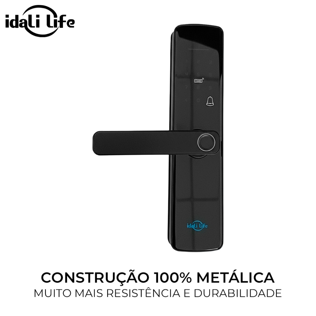 Fechadura Digital Inteligente IDALI LIFE Segurança Avançada – Segurança inteligente com o design que sua porta merece Transforme a entrada da sua casa com a Fechadura Digital IDALI LIFE, um modelo completo que combina tecnologia avançada, praticidade no dia a dia e um acabamento totalmente metálico que valoriza qualquer ambiente. Ideal para portas de madeira ou portas de segurança, ela oferece uma experiência moderna e confiável desde o primeiro toque. 5 Formas de Abertura, Total Controle: - Biometria ultrarrápida – leitura da digital em até 0,5s - Senha personalizada (6 a 10 dígitos) - Senha temporária – perfeita para visitantes, entregadores e diaristas - Cartão magnético de acesso - Aplicativo – controle inteligente na palma da mão - Chave mecânica – segurança extra quando precisar Por que escolher a IDALI LIFE? Construção 100% metálica, mais resistente e durável Desbloqueio instantâneo, sem atrasos Múltiplas camadas de segurança Instalação simples em diversos tipos de porta Tensão de trabalho: 4,8V ~ 6V Funcionamento por baterias AA (não inclusas) Acompanha o Kit Completo: 1x Fechadura Digital IDALI LIFE 1x Manual de Instalação 1x Kit completo de instalação 2x Cartões de acesso 2x Chaves mecânicas Cuidados Essenciais: Evite produtos químicos ou abrasivos na limpeza; Mantenha o sensor sempre limpo; Verifique periodicamente o nível das baterias; Consulte o manual antes de ajustes ou reparos.