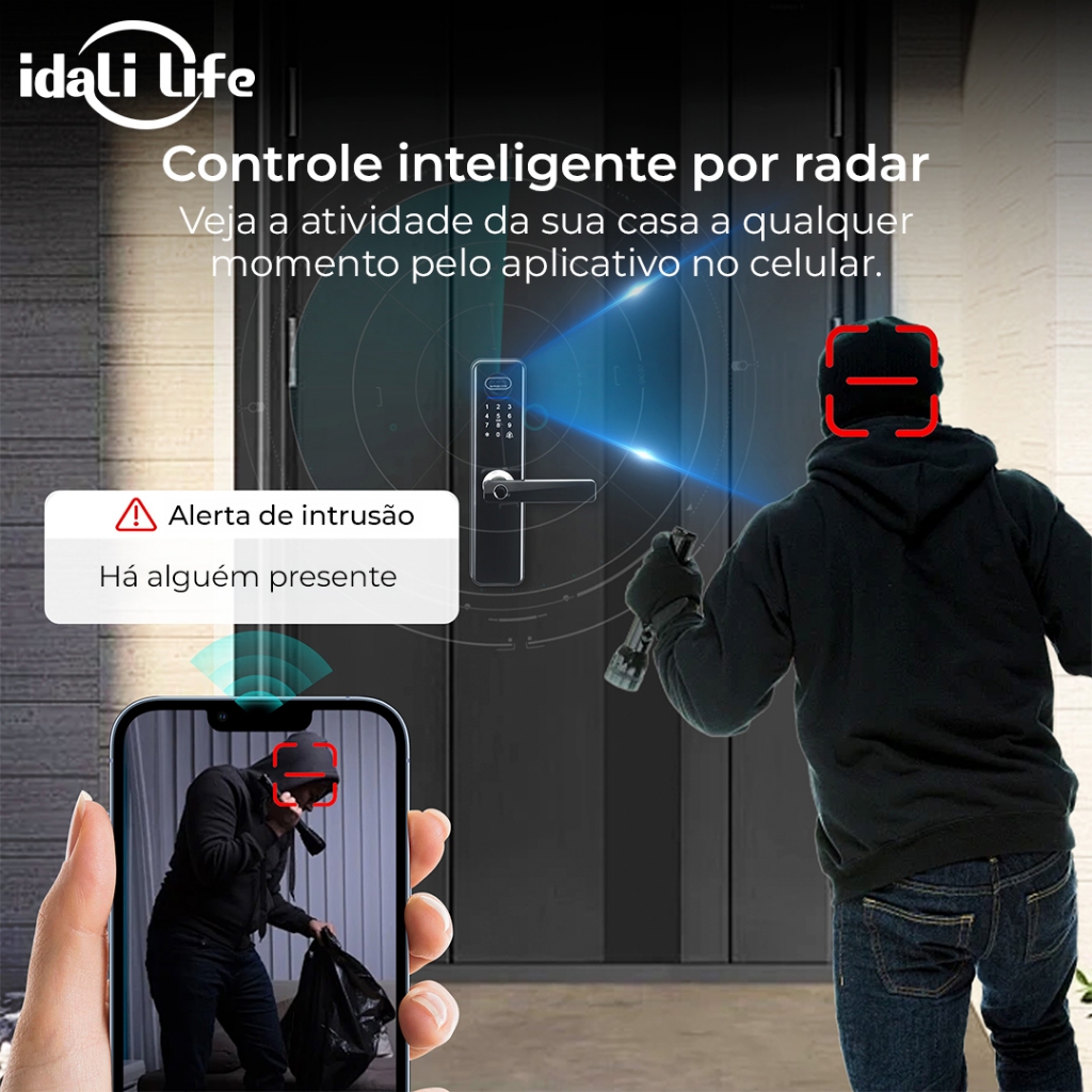 Fechadura Digital Inteligente com Câmera Biométrica Impressão Cartão Senha Desbloqueio IDALI LIFE