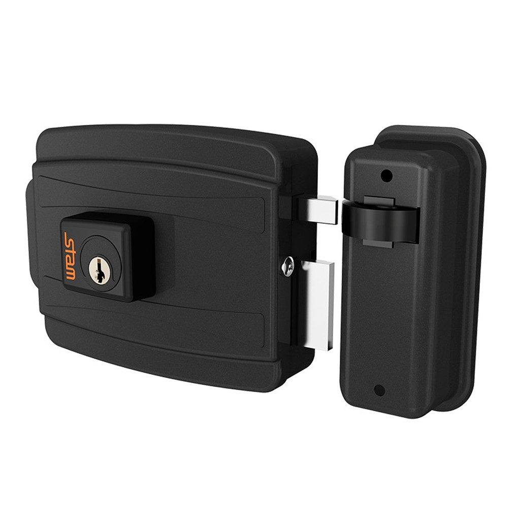 Fechadura Elétrica Preto Fosco Cilindro 40mm Portas Portões Ferro Aço Inox Abre Para Fora Ou Dentro