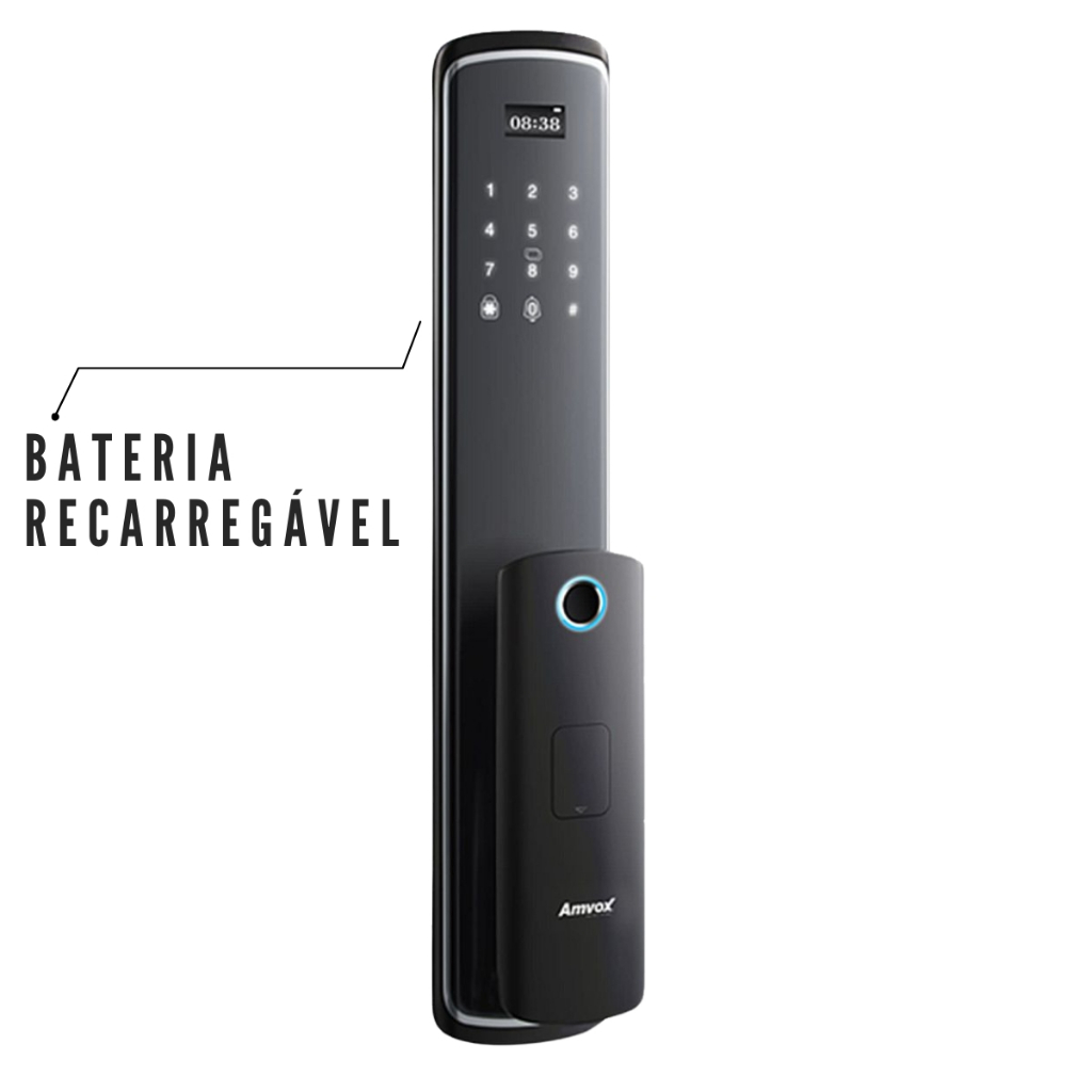Itens inclusos na caixa: - 1 Fechadura Eletrônica - 1 Manual (Português) - 1 Certificado de Garantia ESPECIFICAÇÕES: - BIvolt - Aplicativo de Acesso - Até 299 Cadastros - Teclado Touch Screen - Acesso por Comando de Voz - Fácil Instalação - Bateria Recarregável - Desbloqueio por Código, App, Cartão ou Digital - Conexão Wi-Fi - Bateria Recarregável - Desbloqueio por Digital - Smart Fechadura Eletrônica Descrição: Segurança, modernidade e praticidade. A Fechadura AFC 2000 AMVOX traz tudo o que você precisa para seu lar. Com capacidade para até 299 cadastros, seja por senha, biometria ou cartão, ela oferece um teclado touch screen de fácil manuseio e instalação. Conta também com bateria recarregável e comando de voz, proporcionando total segurança para sua casa. Garantia do vendedor: 12 meses