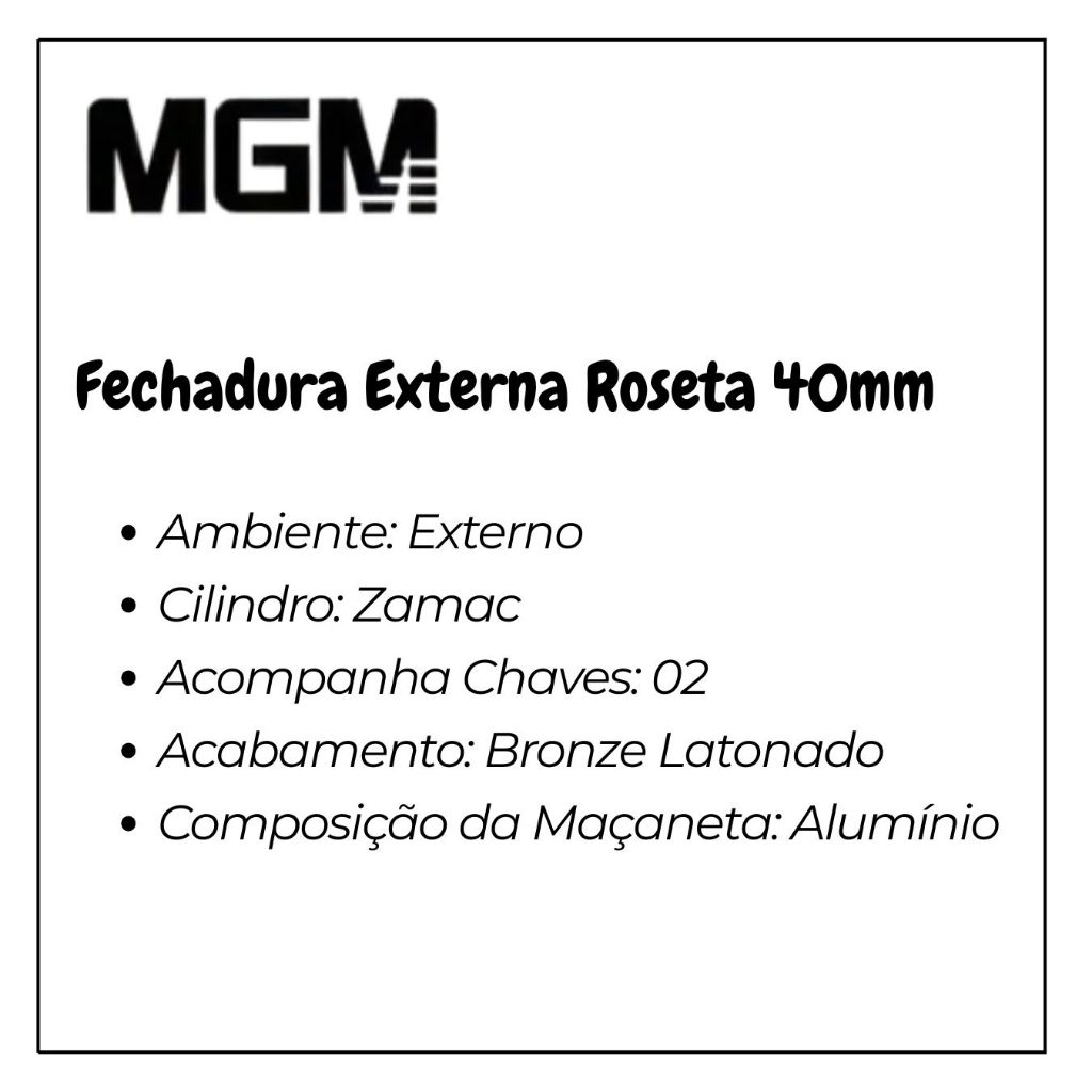 Fechadura Externa Roseta 40mm Mgm Módena Bronze