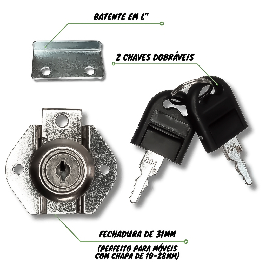 Fechadura Gaveta Tambor 31mm Com Chave Fixa Para Móveis Armários Guarda Roupa Em Geral