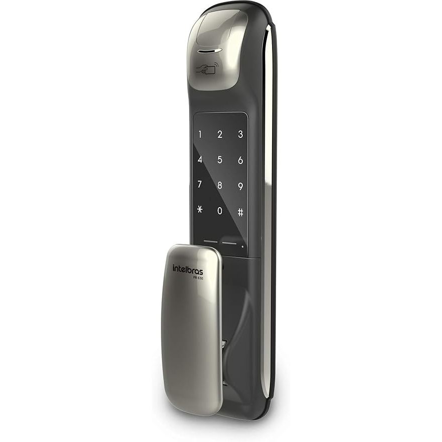 A Fechadura Digital FR 630 possui um design diferenciado com abertura push & pull para deixar seu ambiente mais moderno e o seu dia a dia mais prático. Com ela você tem 4 tipos de acionamento: biometria, senha, adesivo de proximidade e chave física. Utilizada para controle de acesso de casas, apartamentos, escritórios e ambientes comerciais. Aplicada em portas de madeira, possui voice guide que auxilia na configuração das principais funções. Sua alimentação é feita por 8 pilhas AA que acompanham o produto, proporcionando autonomia de 1 ano com 10 acessos diários. Sinalização de pilha fraca com até 1 semana de antecedência. Em caso de esgotamento das pilhas, é possível conectar uma bateria 9 V e digitar sua senha. ESPECIFICAÇÕES: Marca: Intelbras Modelo: Fr630 Cor: Cinza Voltagem: Bivolt Alimentação: 8 pilhas alcalinas AA CARACTERÍSTICAS: Tecnologia push & pull, facilitando o acesso ao ambiente. Sistema de travamento automático com LED indicativo. 5 formas de acesso Cadastro de até 100 impressões digitais Cadastro de até 100 tags ou adesivos de proximidade Cadastro de até 04 senhas Opção de chave física como entrada de contingência DIMENSÕES: Altura: 38.6cm Largura: 9cm Comprimento: 7.9cm Espessuras: 35 a 50mm Peso: 3,8kg O QUE VEM INCLUSO? 1 Fechadura Digital 1 Manual de usuário 1 Manual de instalação 1 Mecanismo de tranca 2 Chaves 3 Tags 3 Tags adesivas 8 Pilhas alcalinas tipo AA 1 Kit Parafusos 1 Batentes 1 Falsa testa 1 Gabarito de Instalação 1 Chapa de fixação Estamos à disposição para esclarecer qualquer dúvida. Atenciosamente, Equipe NegociuN!