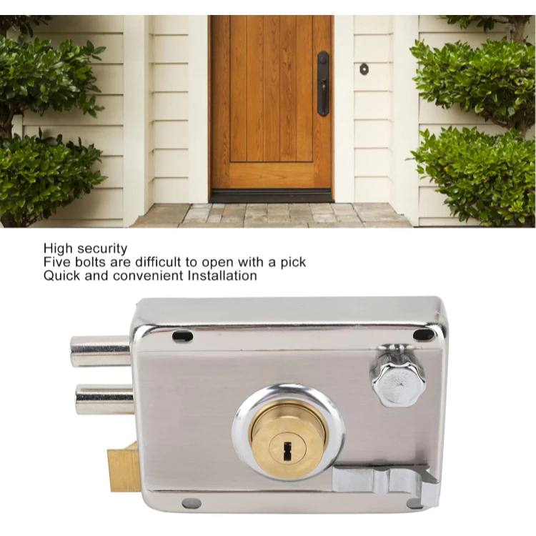 Nota: A cor do produto é cromada. Bloqueio de montagem de superfície e revestimento de cromo forte e durável para ambos os jogos de segurança e conveniência Bloqueio de montagem em superfície folheada cromada é uma solução versátil e segura e confiável que aumenta A segurança das portas domésticas e de escritório. Ao contrário da trava de Mortise, A trava de montagem na superfície da superfície da porta é montada na superfície da segurança Extra. Aqui são alguns Características Importantes Sobre este Tipo de Bloqueio: 1. Fácil Instalação: Uma das Principais Vantagens Das Fechaduras de Montagem da Superfície É Que É Fácil Instalar.Eles São Diretamente Fixos Na Superfície Da Porta Sem Fenda Complicada. 2. Segurança mais alta: A trava de montagem de superfície é conhecida por sua forte e durável. Eles geralmente têm uma construção metálica forte e difícil de usar. 3. A Manutenção fácil de fácil manutenção: A manutenção da trava de montagem da superfície é geralmente conveniente e é fácil de substituir as peças ou realizar uma atualização de segurança se necessário. 4. Amplamente utilizado: Em adição às portas de entrada, as fechaduras montadas na superfície também são usadas em portãos, portas de armazém e outros lugares que exigem segurança aprimorada. Outras características Local de instalação da porta: Porta Tipo de trava de segurança: Trava de segurança Método de Instalação: Instalação de Superfície Método de Abertura de Pivote: Tipo de Abertura de Pivote Material da Abertura: Aço + Material da Abertura: Aço Material da Trava: Aço + Material da Trava: Espessura mínima da porta recomendada: 47 mm Espessura máxima da porta recomendada: 49 mm Número de Chaves: 5 Alça Inclusa Alça Inclusa Alça: Não